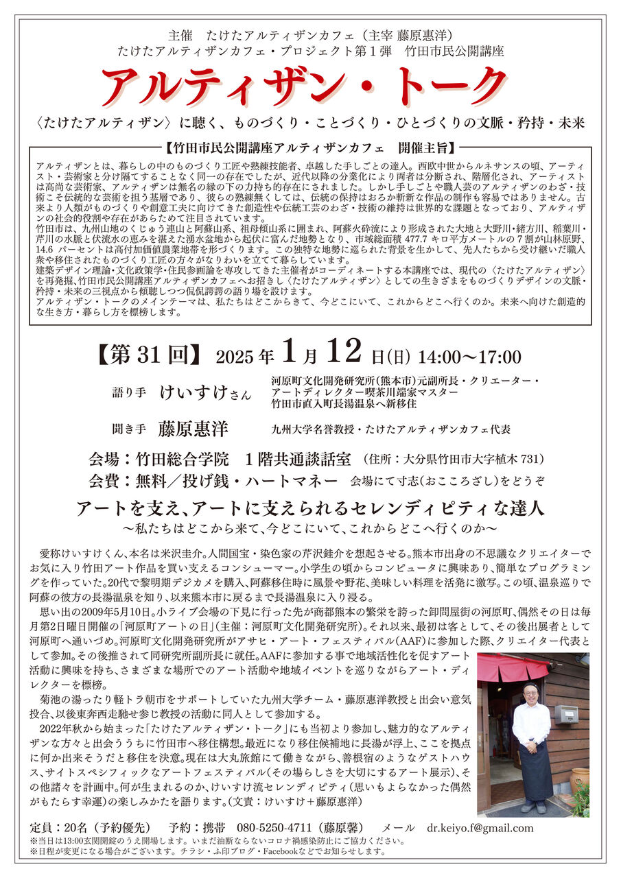 20250112 竹田市民公開講座アルティザン・トーク第31回 語り手:けいすけ(米沢圭介)さん