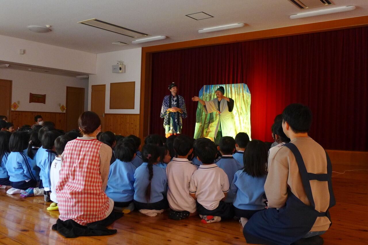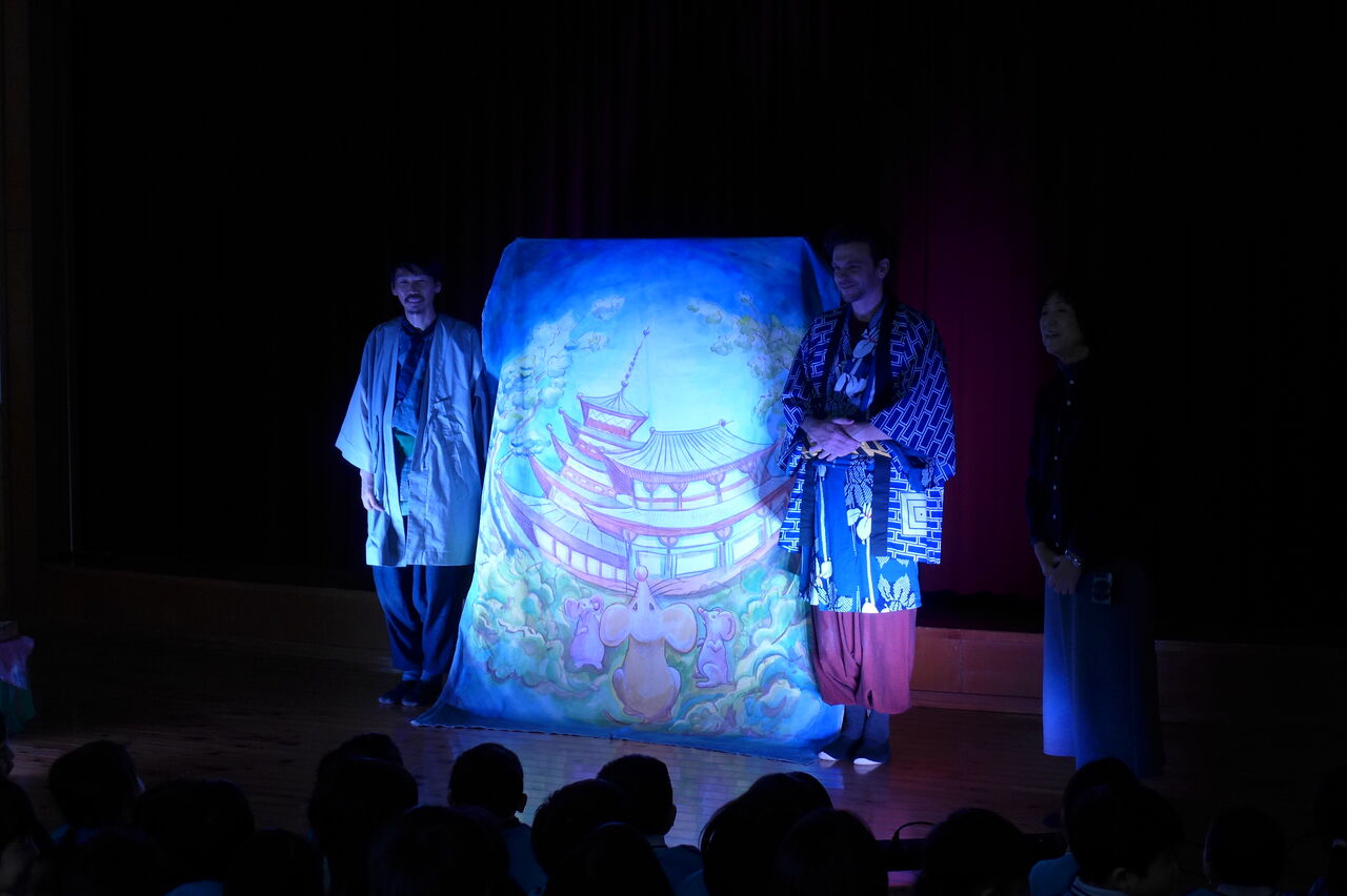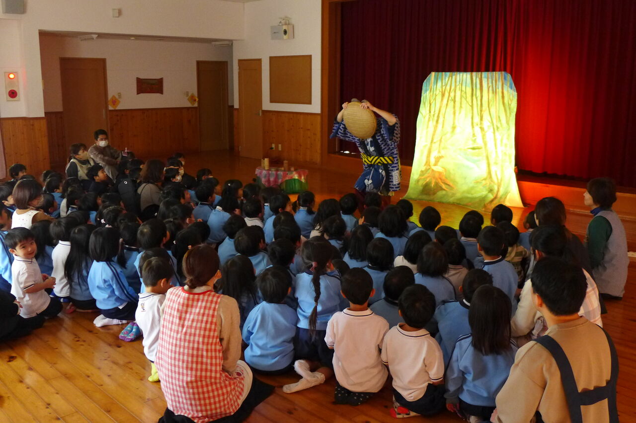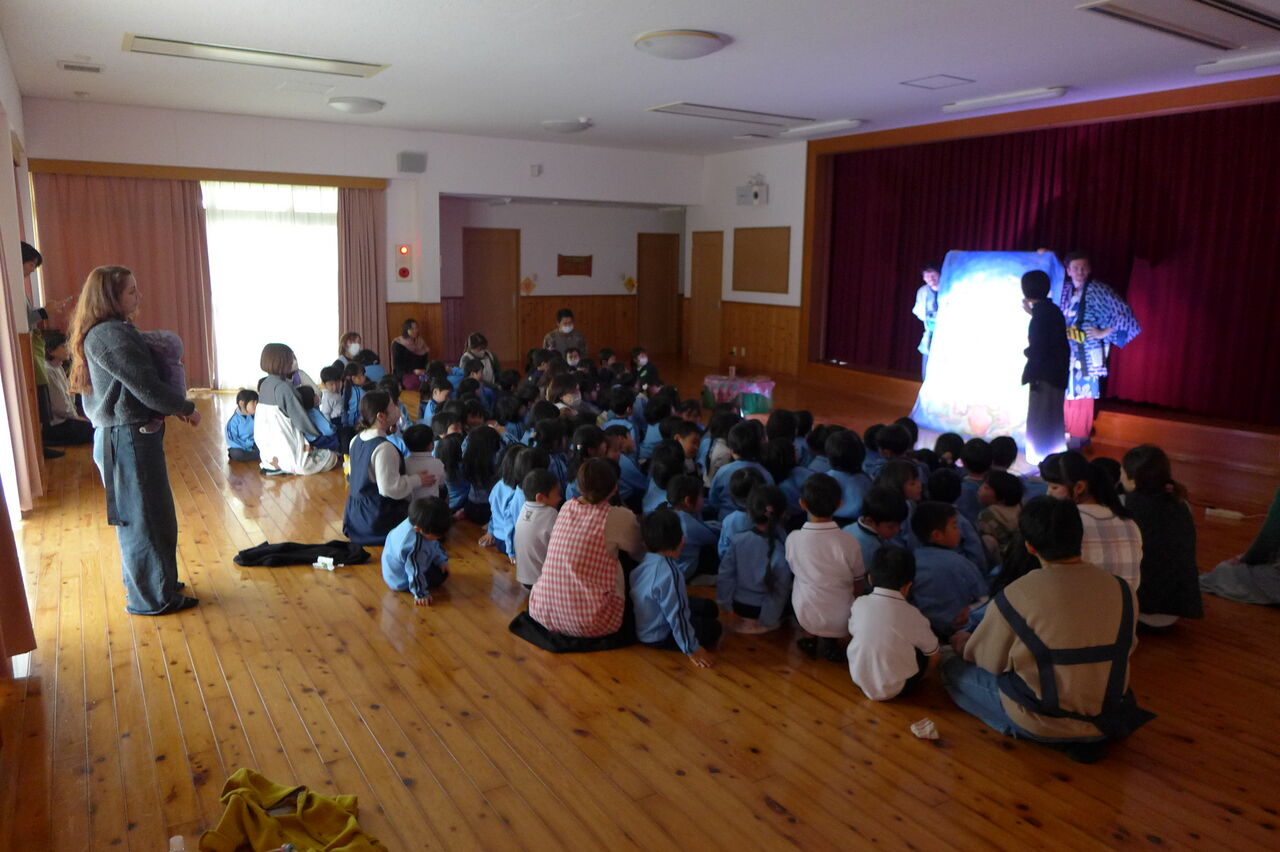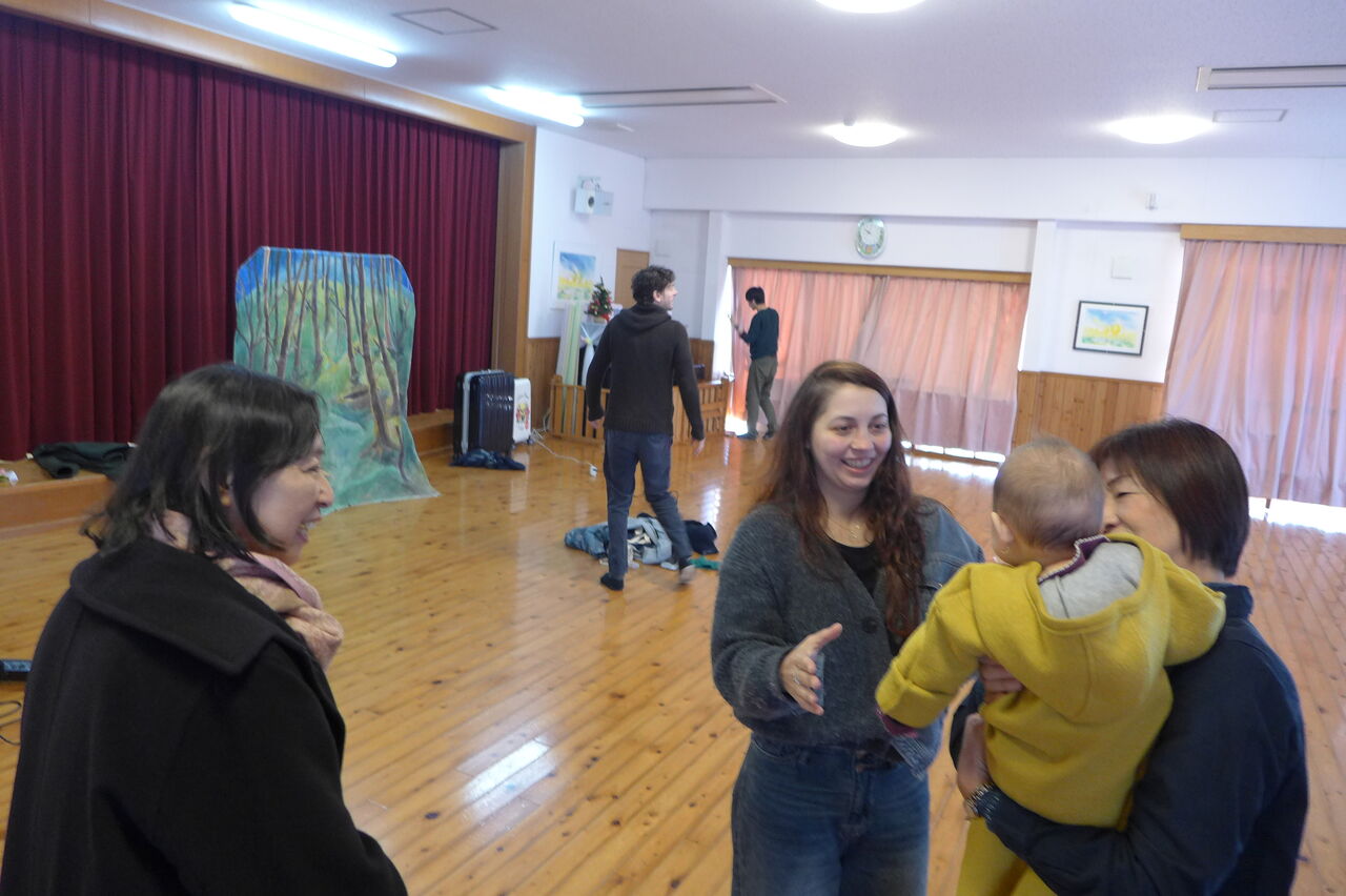 20241217佐々木泰佑・Flavia Tomescu・Alexandru Tudor Sabau 日本語とルーマニア語を交えての「おむすびころりん」オイリュトミー劇!子どもたち大歓声!!佐賀市諸富こども園にて