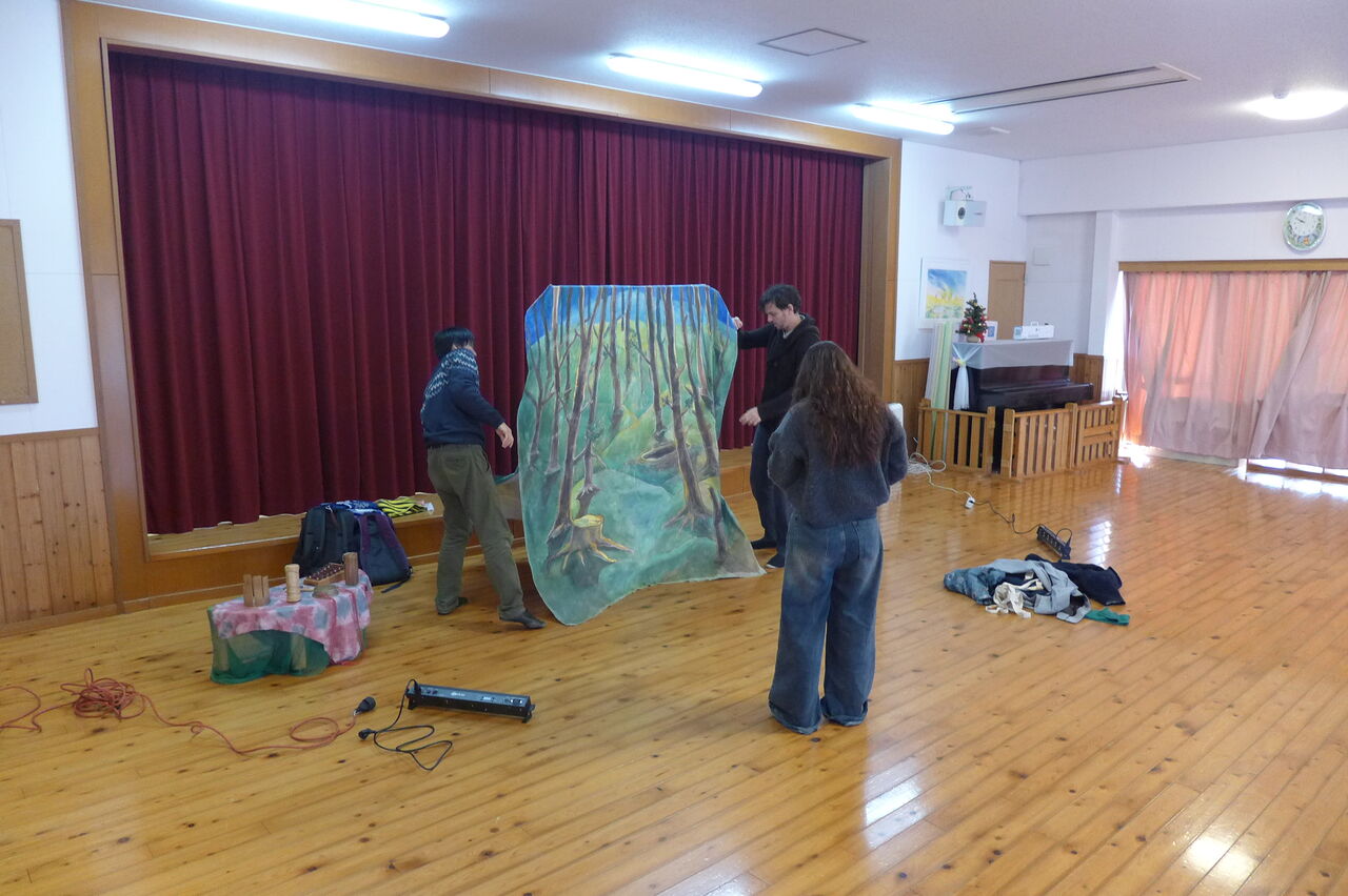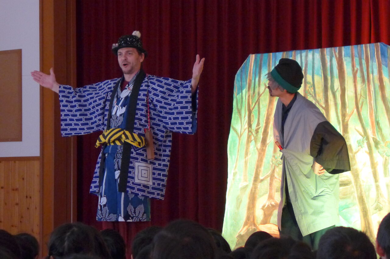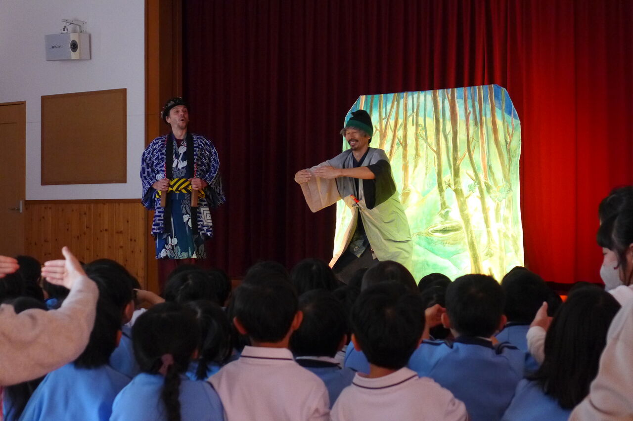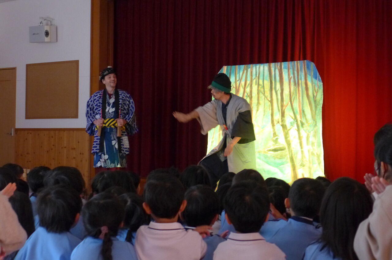 20241217佐々木泰佑・Flavia Tomescu・Alexandru Tudor Sabau 日本語とルーマニア語を交えての「おむすびころりん」オイリュトミー劇!子どもたち大歓声!!佐賀市諸富こども園にて