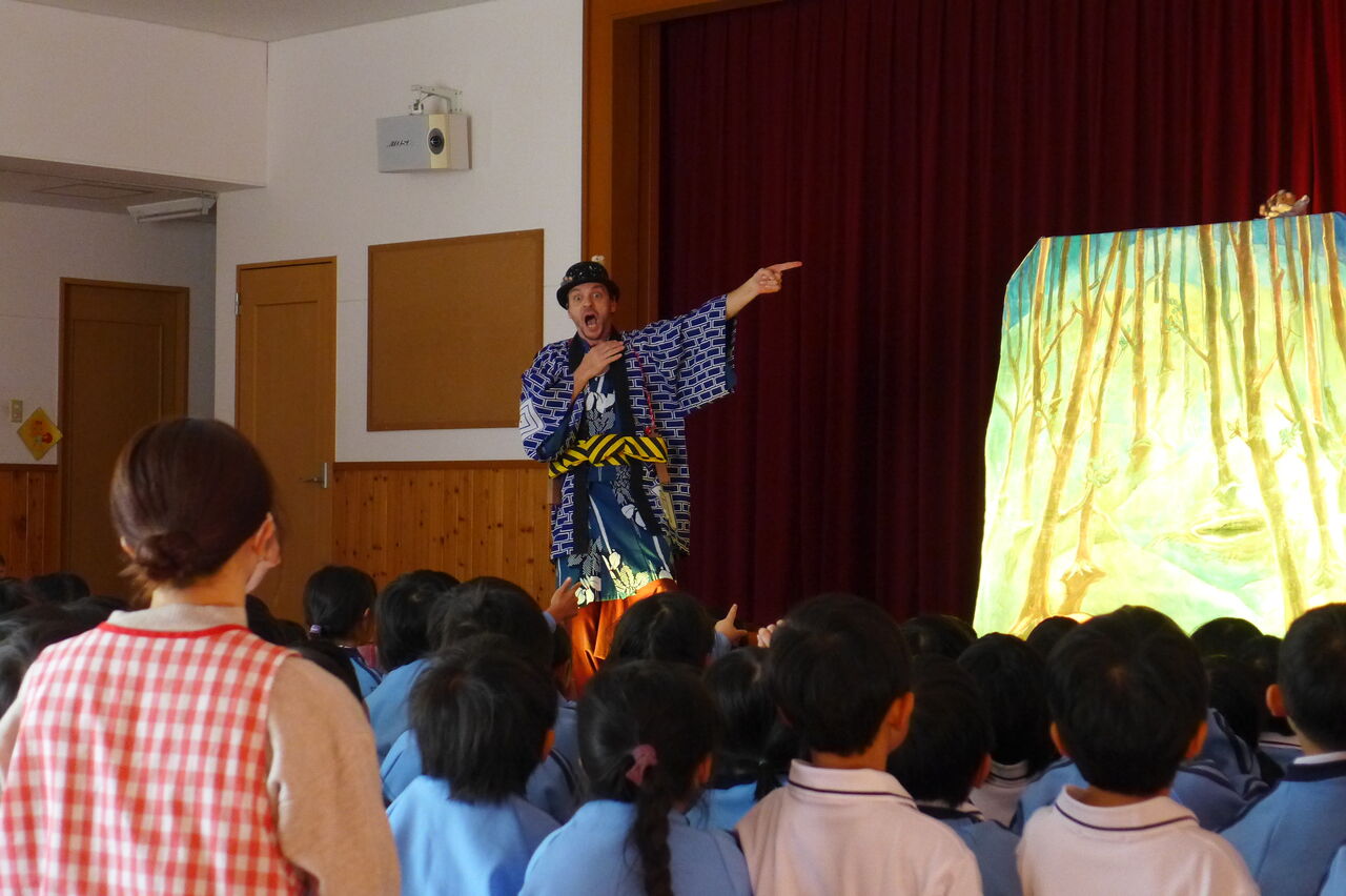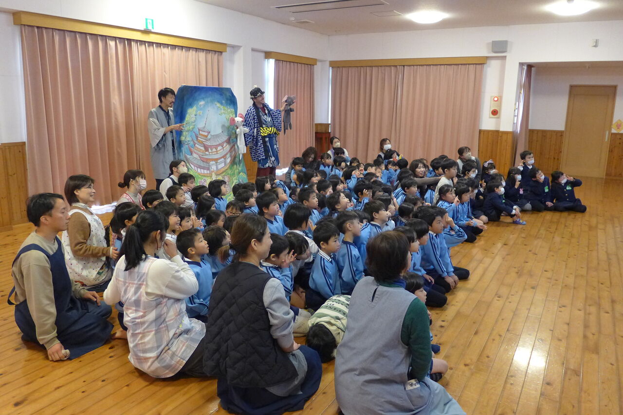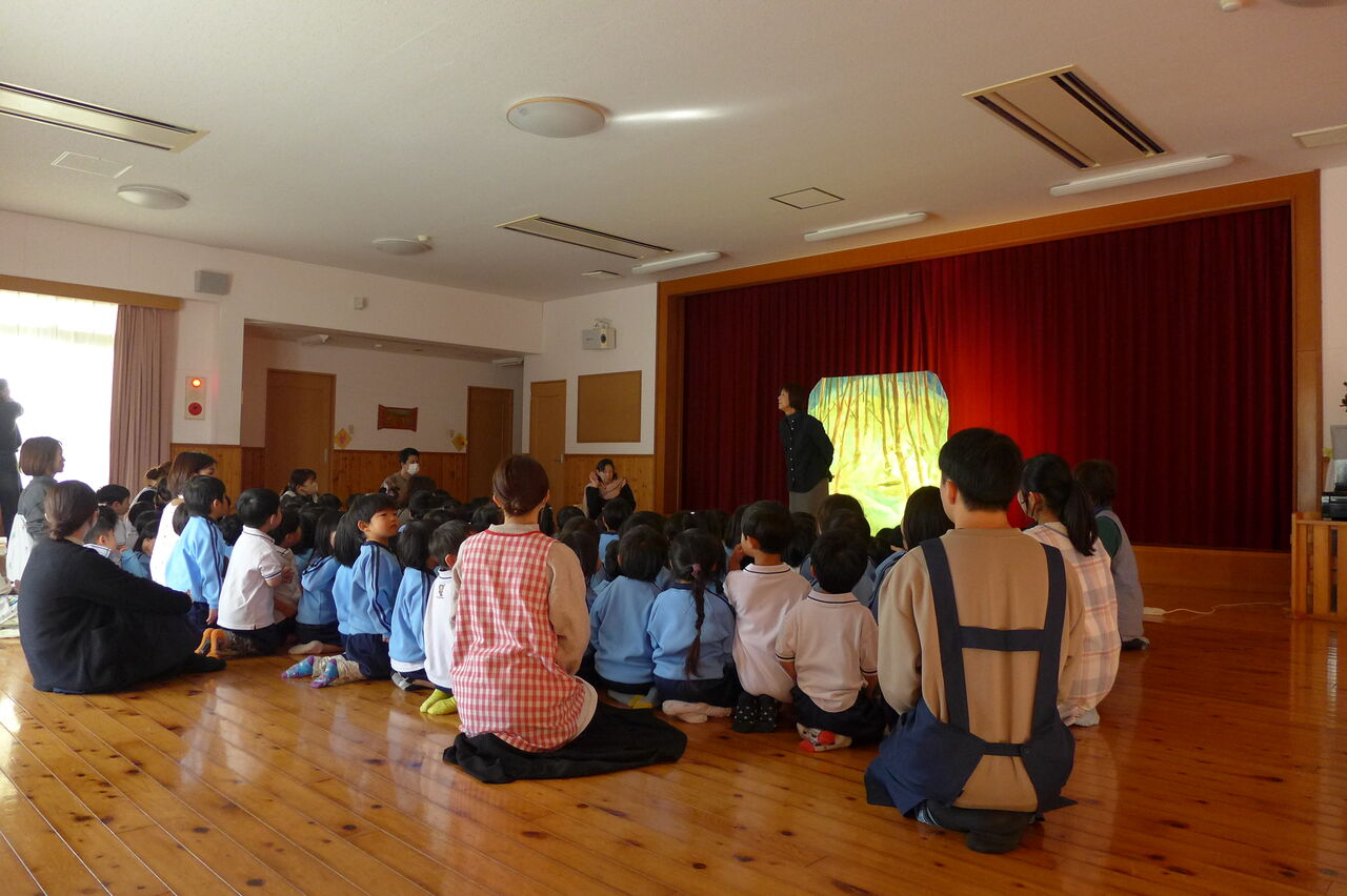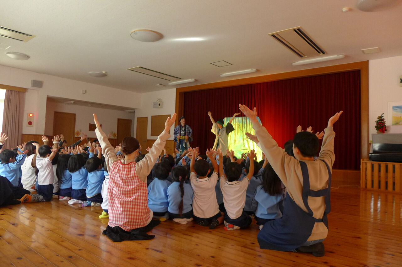 20241217佐々木泰佑・Flavia Tomescu・Alexandru Tudor Sabau 日本語とルーマニア語を交えての「おむすびころりん」オイリュトミー劇!子どもたち大歓声!!佐賀市諸富こども園にて
