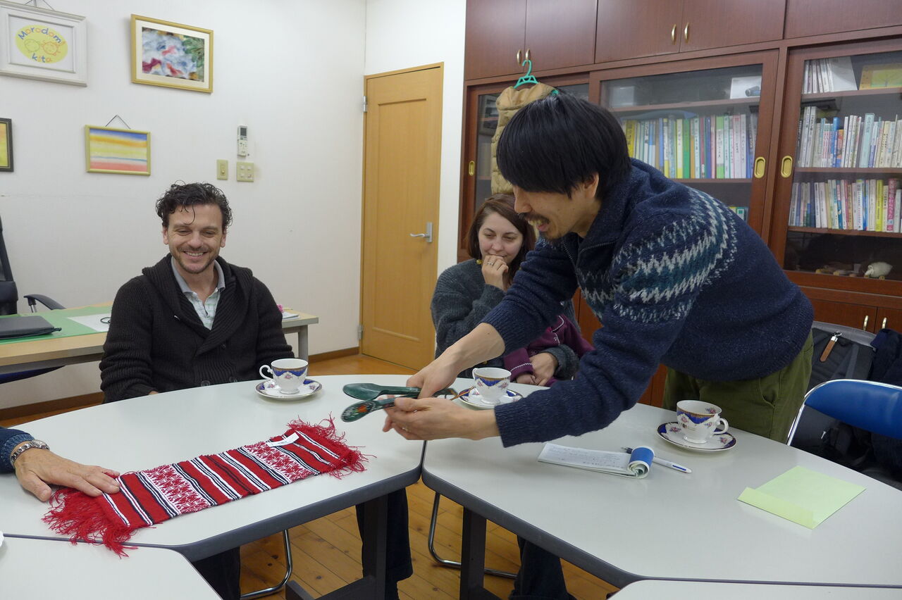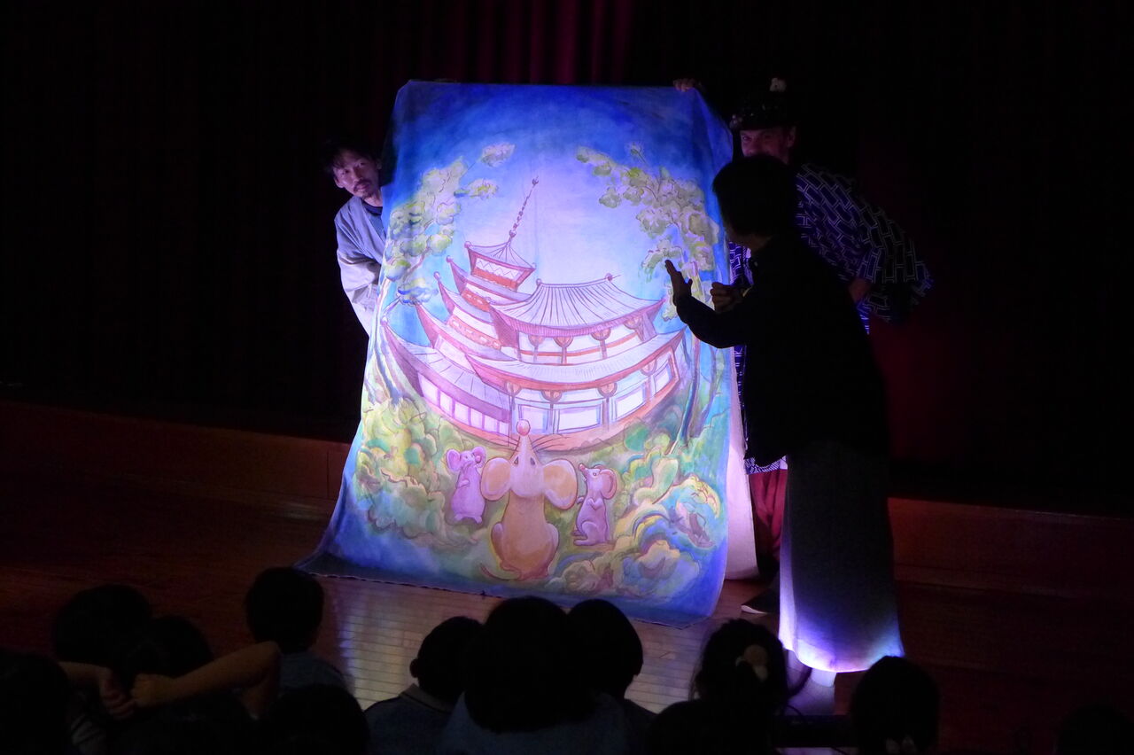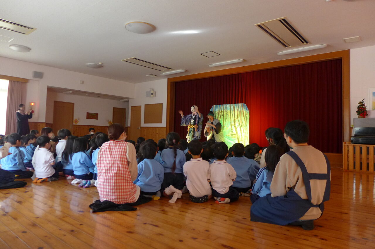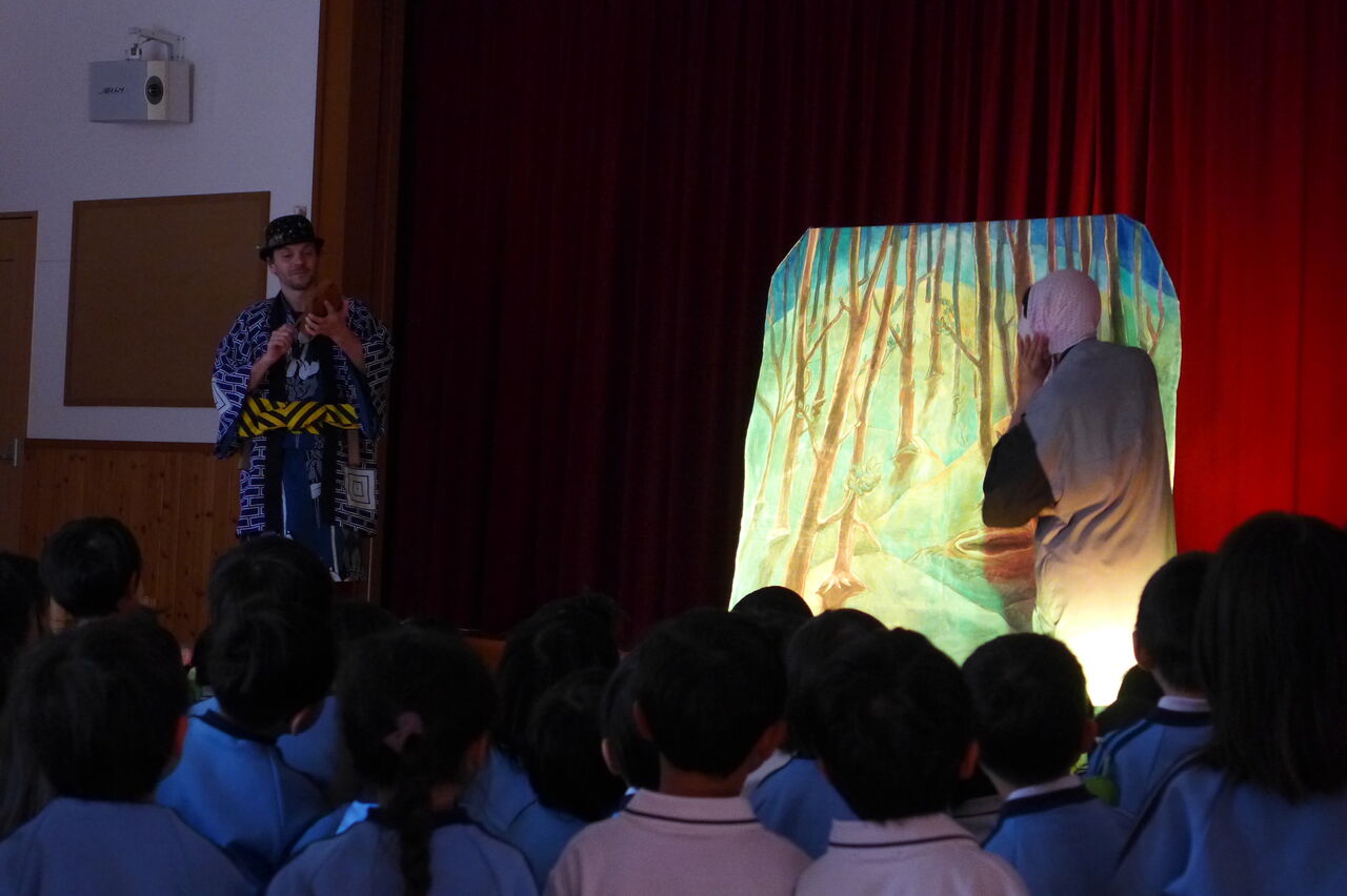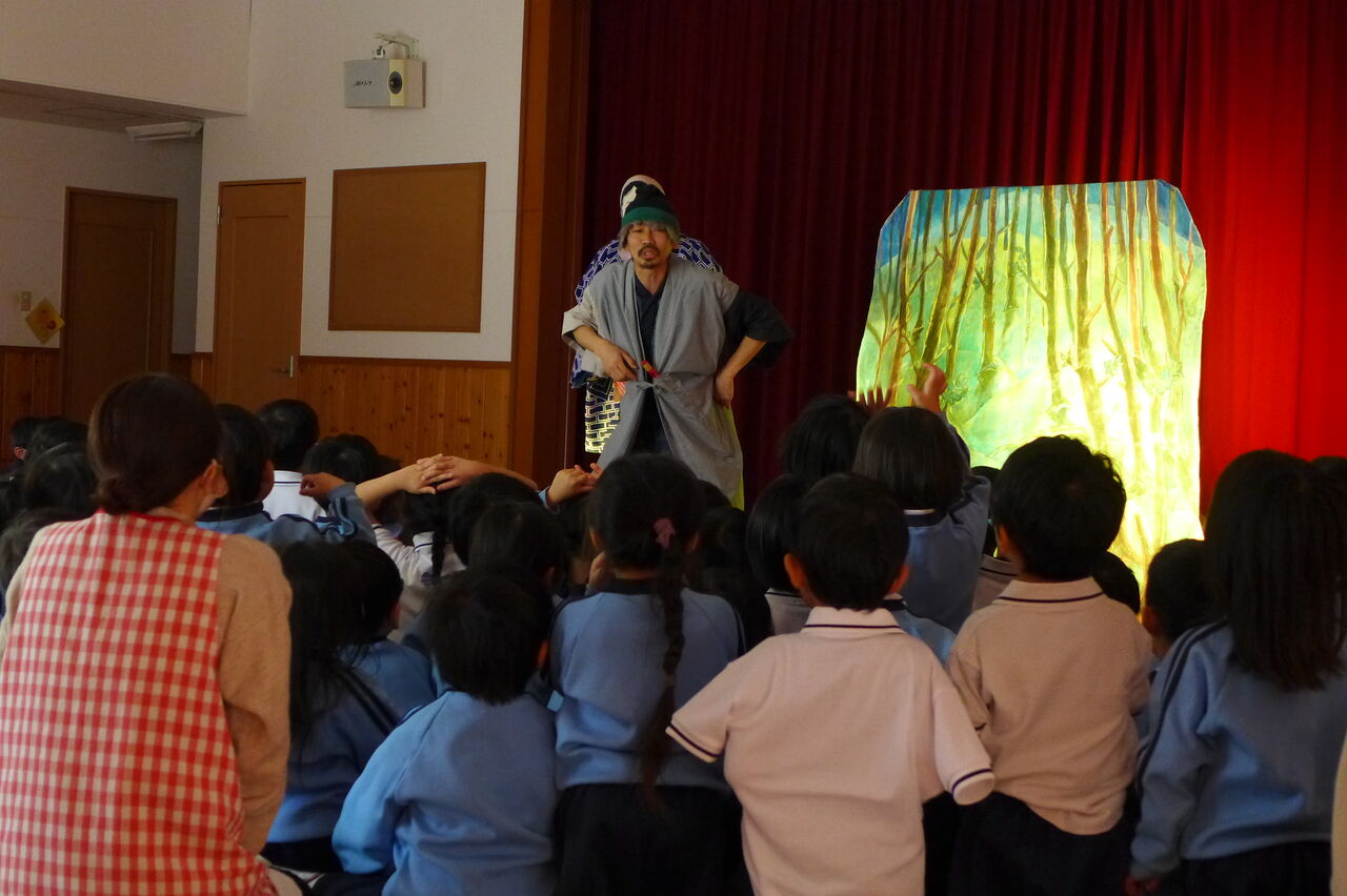 20241217佐々木泰佑・Flavia Tomescu・Alexandru Tudor Sabau 日本語とルーマニア語を交えての「おむすびころりん」オイリュトミー劇!子どもたち大歓声!!佐賀市諸富こども園にて