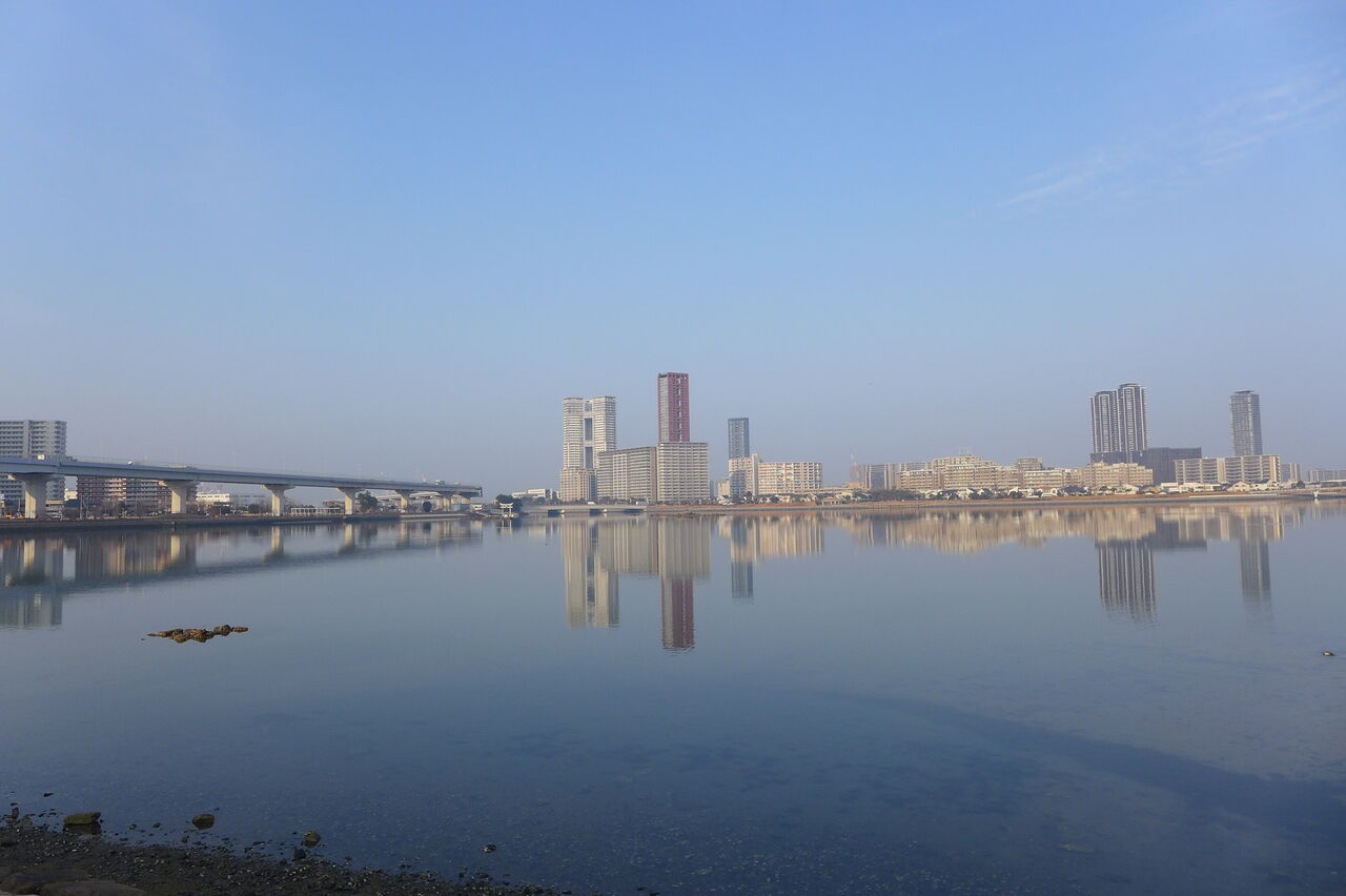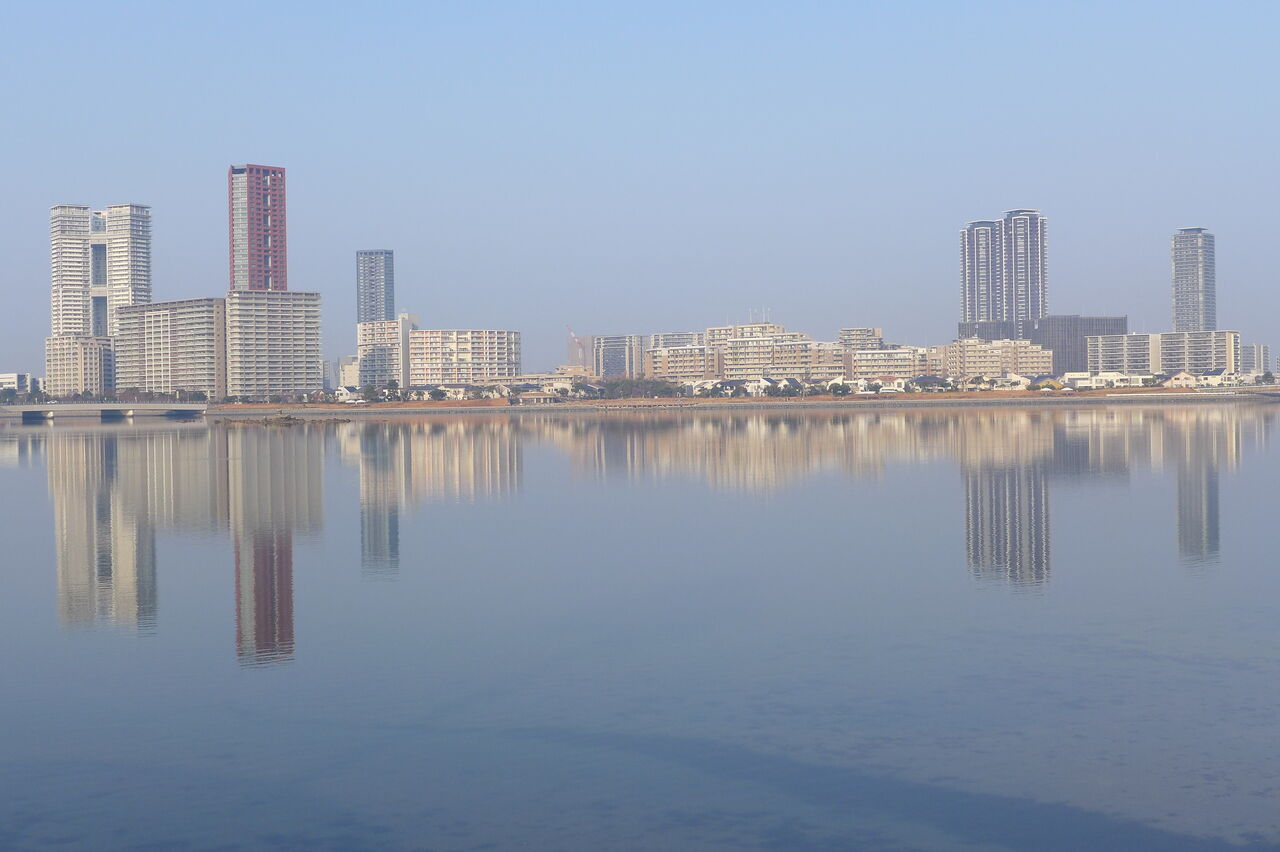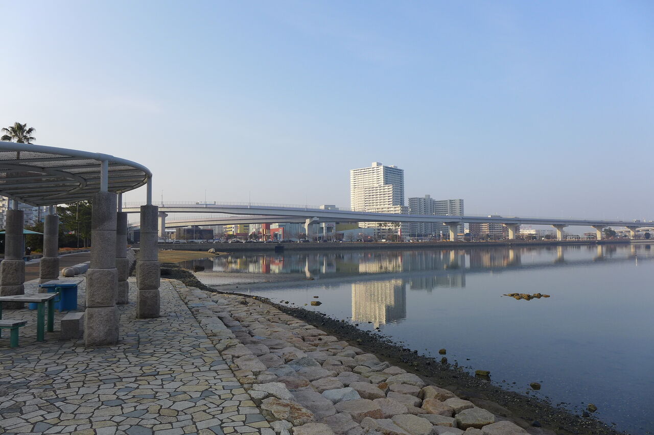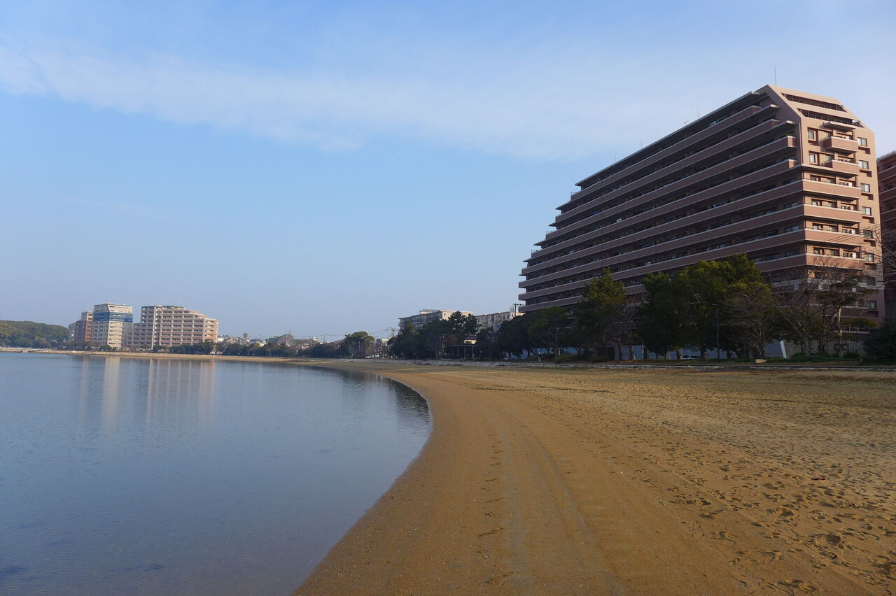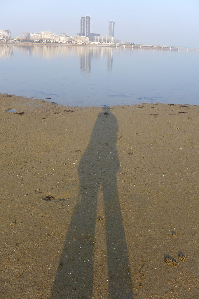 20250124キラキラ朝日に照らされた香椎浜
