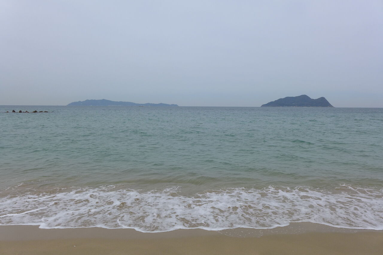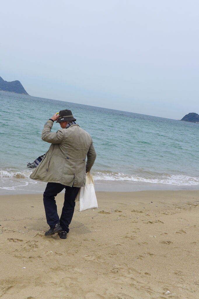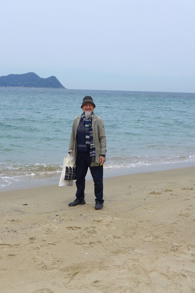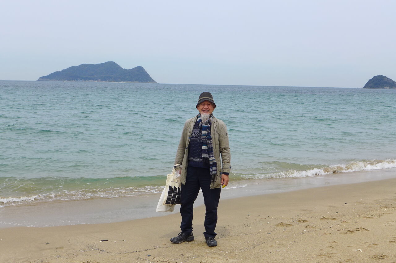 響灘にて。重量(相撲取り)と恩寵(オイリュトミスト)ハイキング・・・・42年目のパチリ記念写真