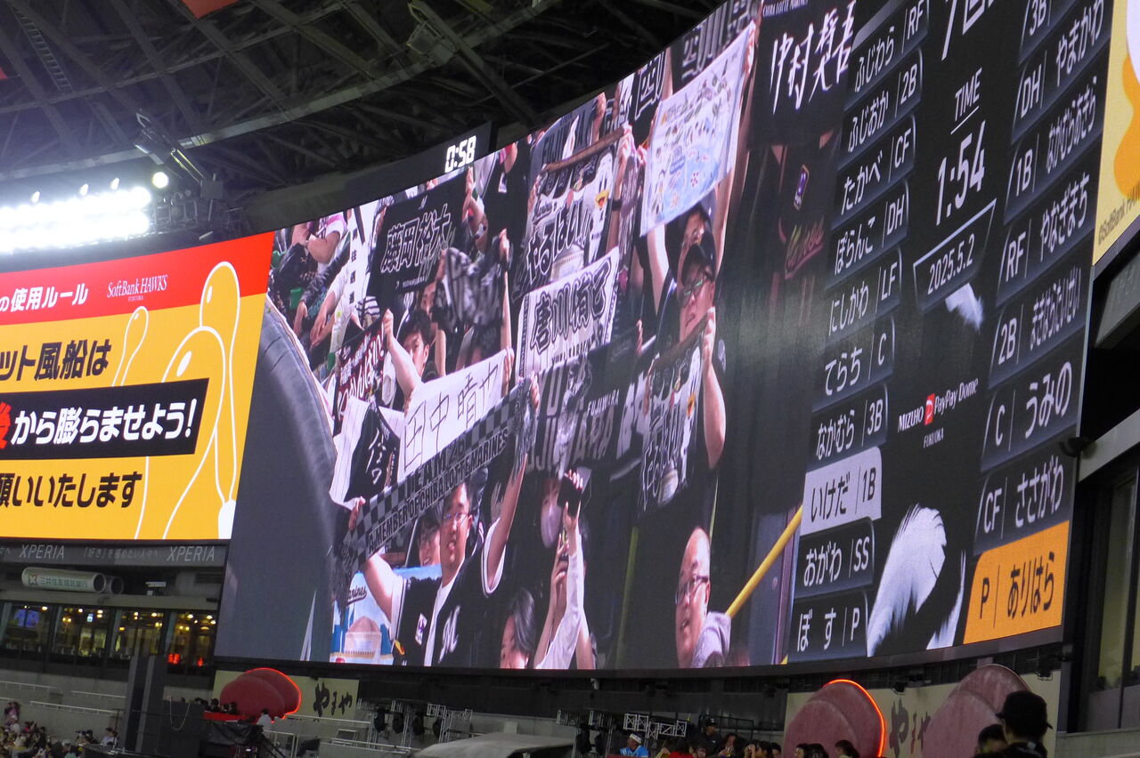 20250502プロ野球ソフトバンクホークスvs千葉ロッテマリーンズを観戦!ホークスが劇的な逆転勝ち3-4x!! 福岡ドームへ、たけたコモンズお仲間たち(T家)と観戦へ