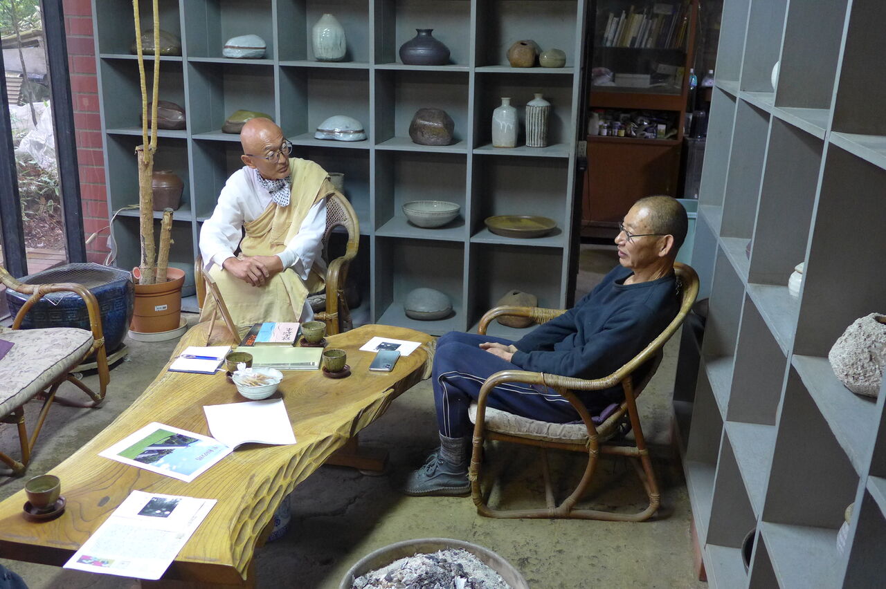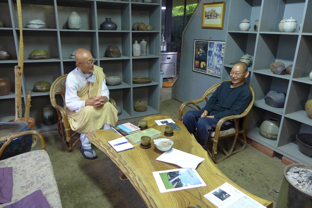 日本山妙法寺西川大上人さまをお迎えして!木工家西岡泰心さん(八女市黒木町)、陶芸家山本拓道さん(八女市星野村)をご紹介しました!