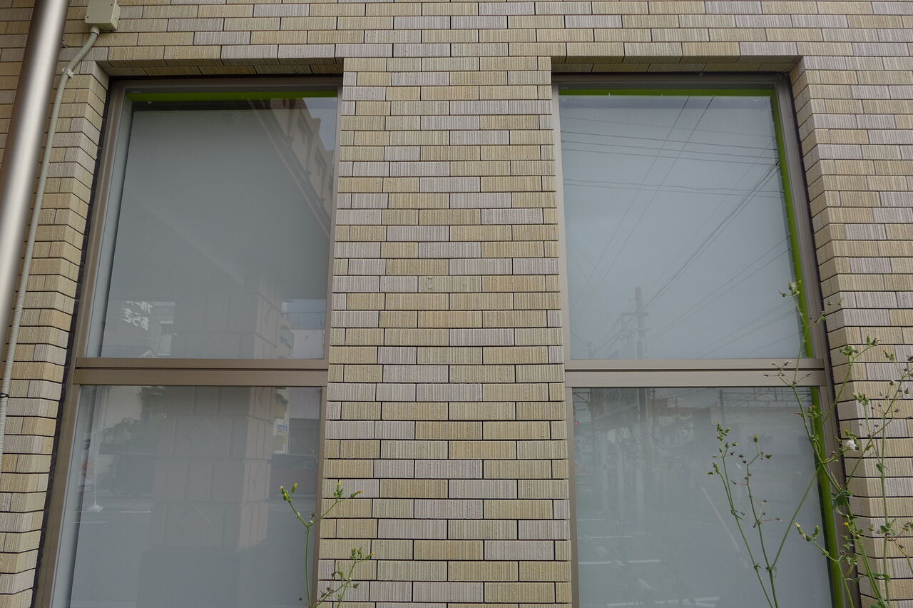 20250510(土)14:00〜大牟田市「廳」建築探偵ツアー開催!〈のこすことは創ること〉ワークショップ第1回(その5)戦前期スクラッチタイル(伊奈製陶製造)1枚を正面西側にて採取!