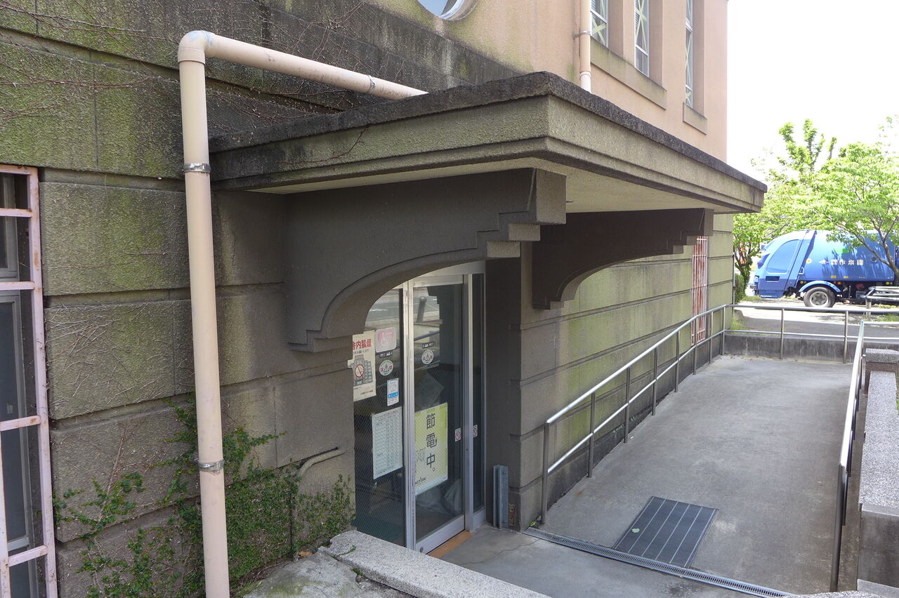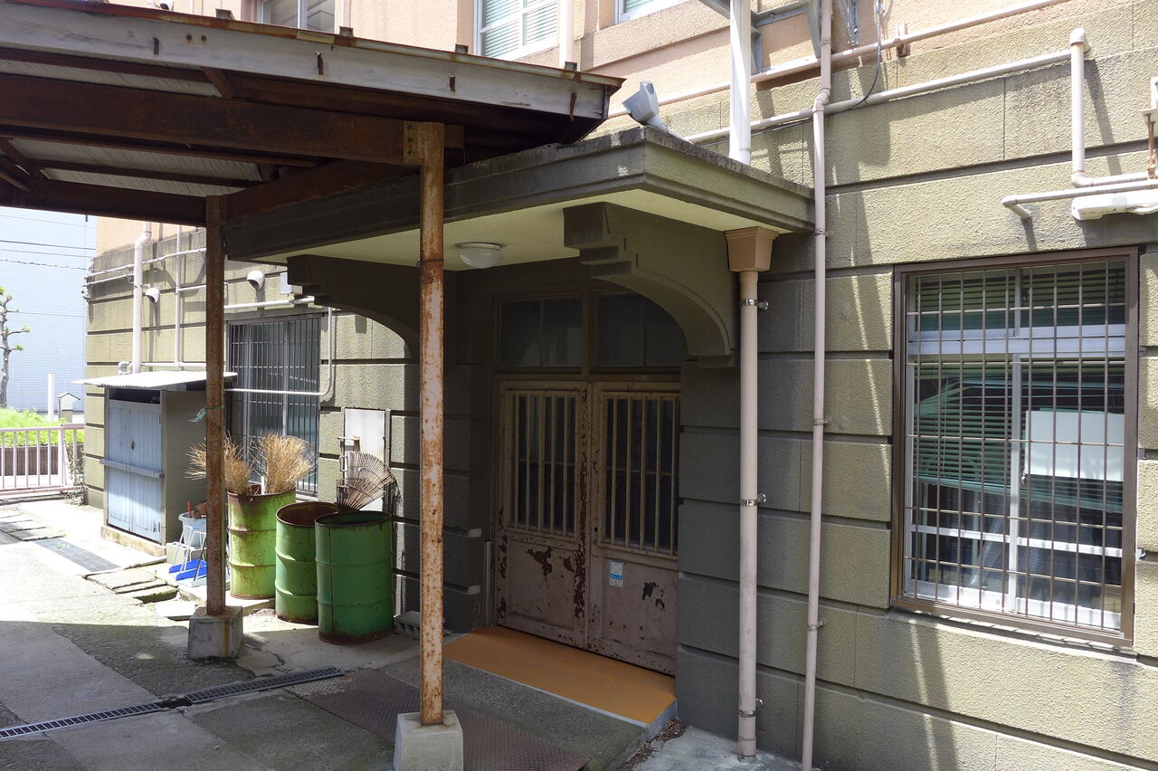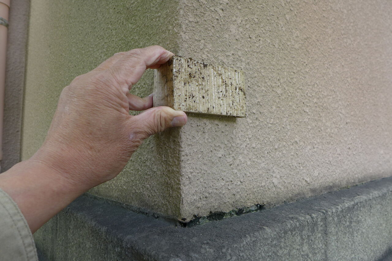 20250510(土)14:00〜大牟田市「廳」建築探偵ツアー開催!〈のこすことは創ること〉ワークショップ第1回(その5)戦前期スクラッチタイル(伊奈製陶製造)1枚を正面西側にて採取!