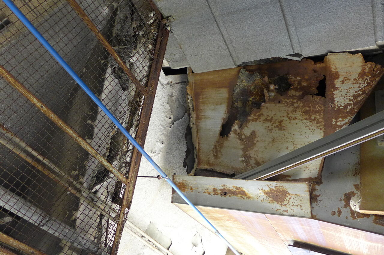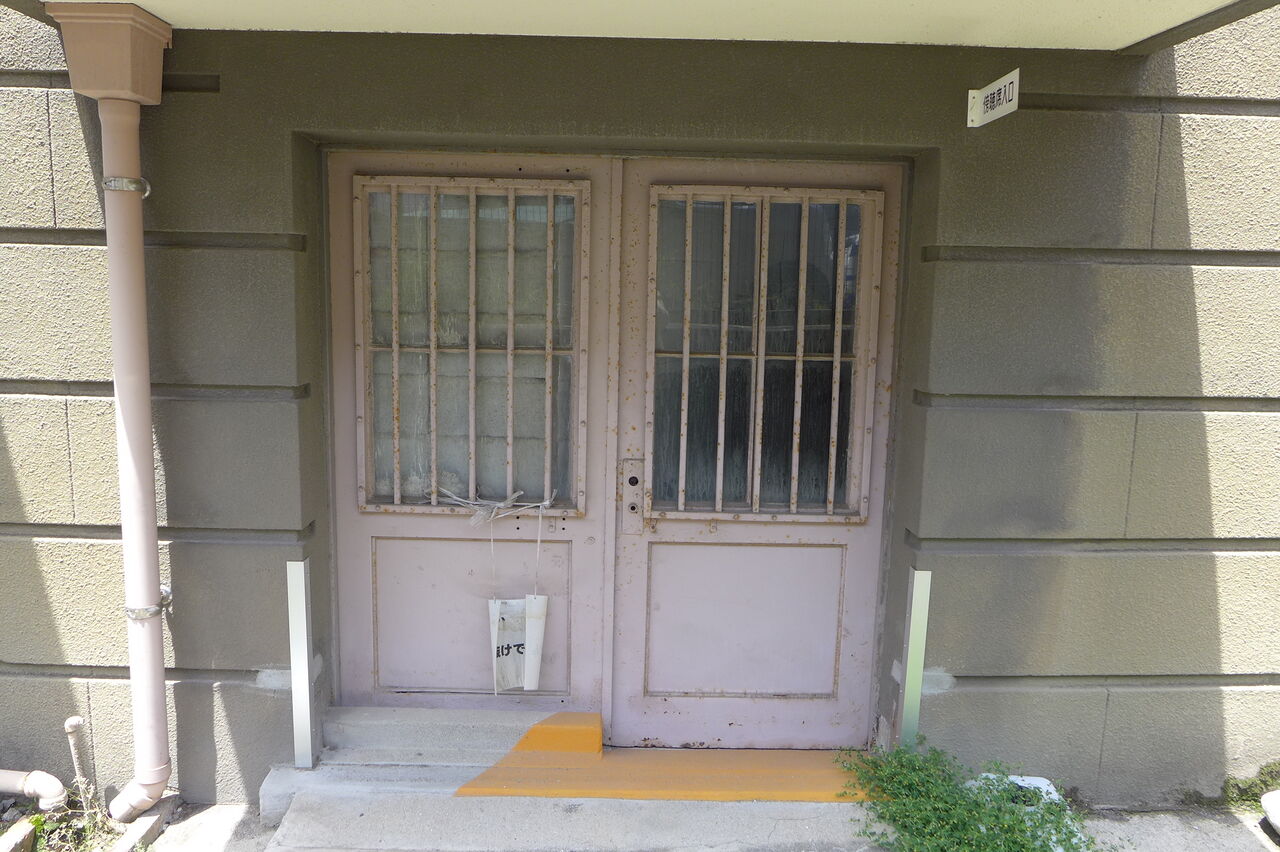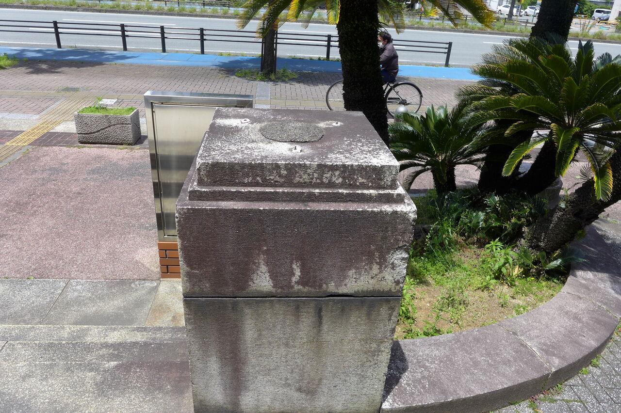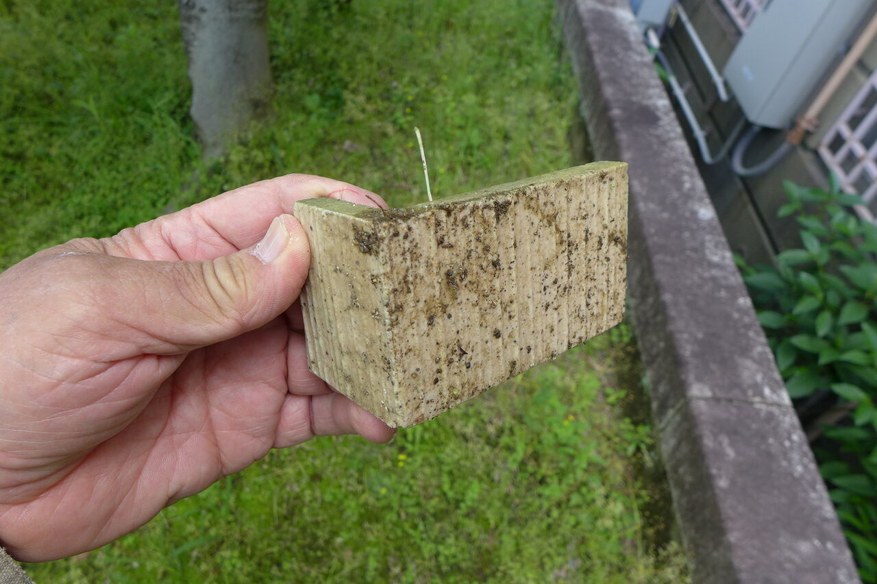 20250510(土)14:00〜大牟田市「廳」建築探偵ツアー開催!〈のこすことは創ること〉ワークショップ第1回(その5)戦前期スクラッチタイル(伊奈製陶製造)1枚を正面西側にて採取!