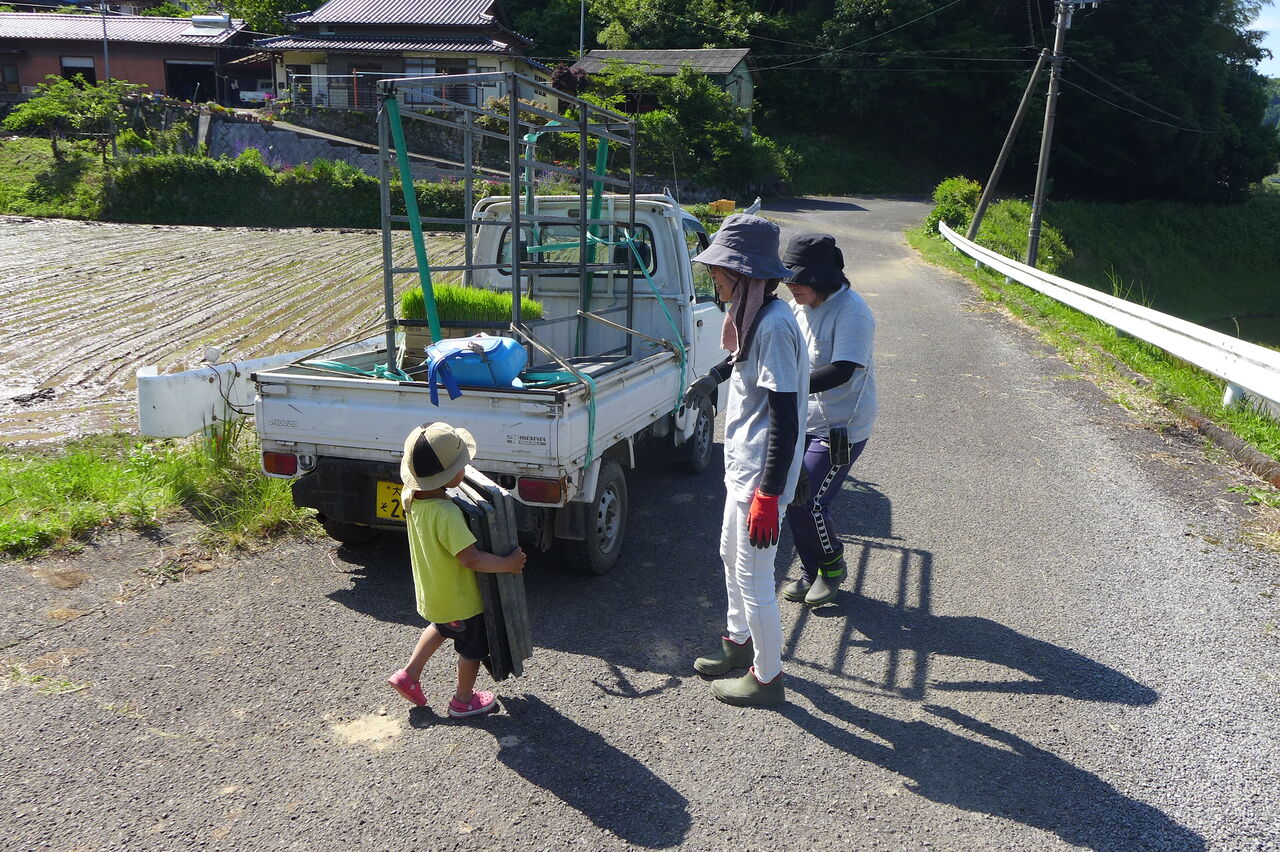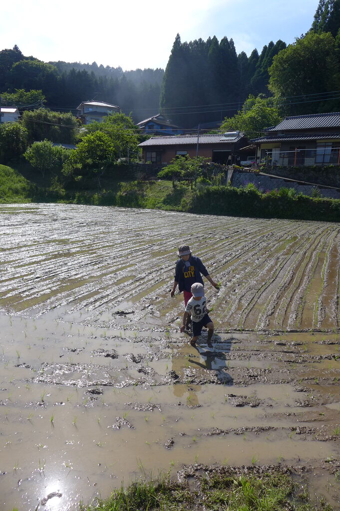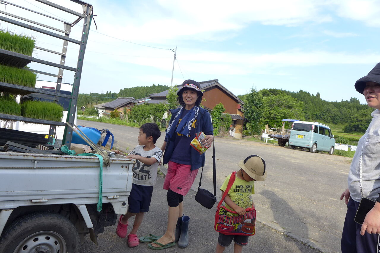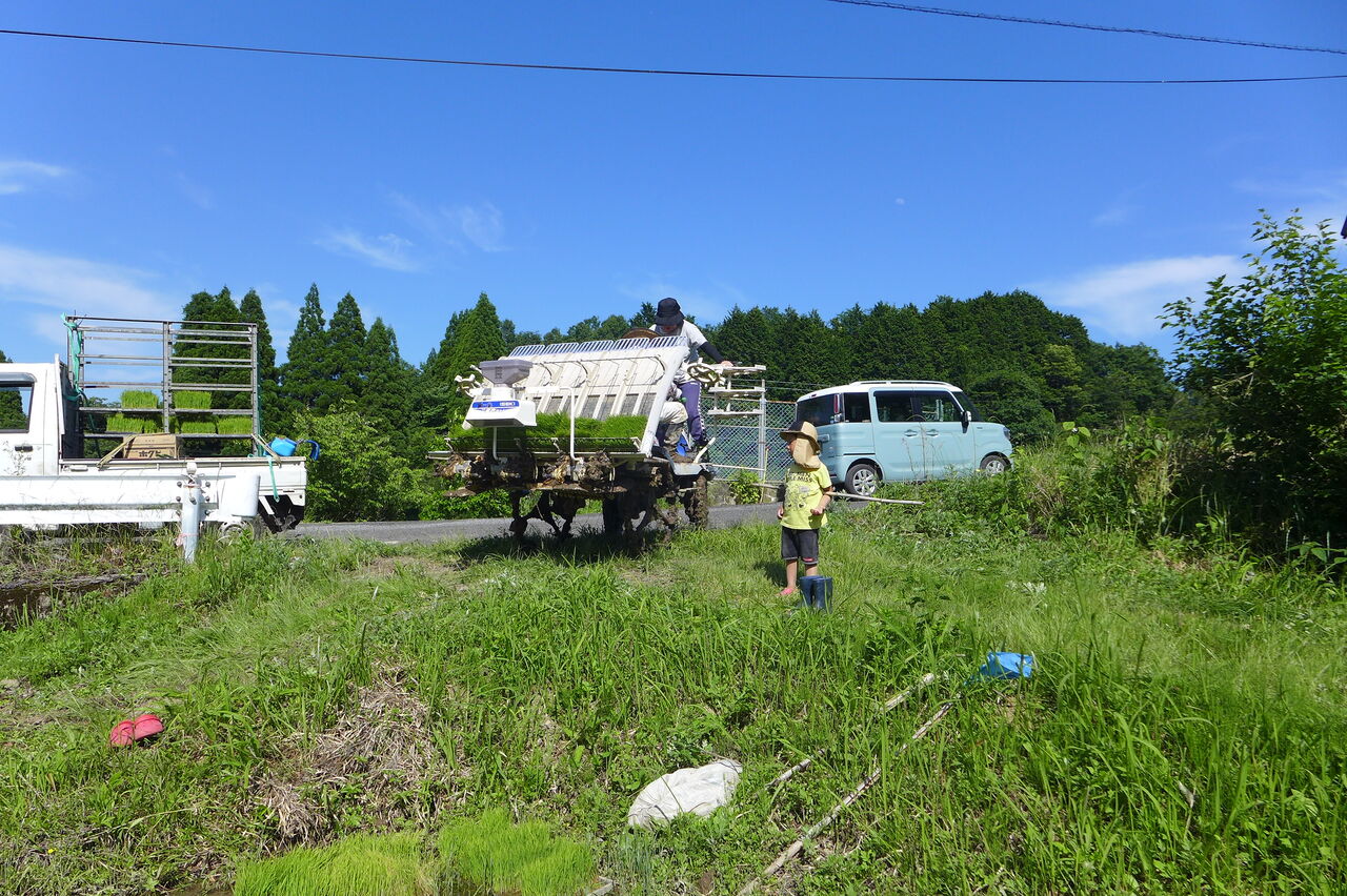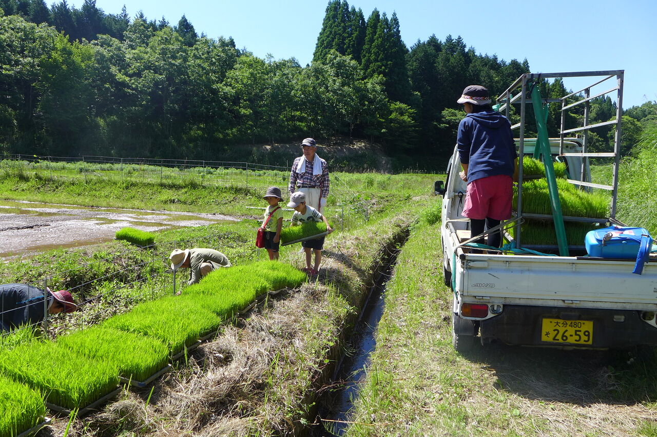 20250605瀧下さんが預かる田植え1丁八反(竹田市直入町梶屋・水口・二又地区)今年は暮らす実験室IKIのみなさんこども連れ応援団のおかげで完了!!