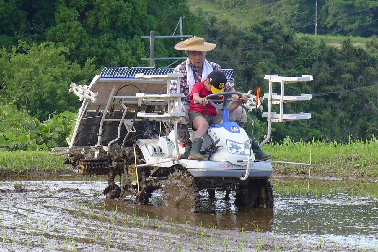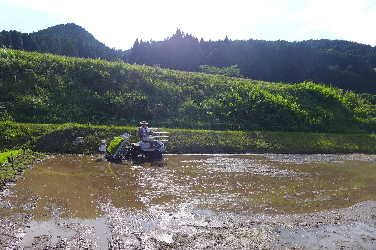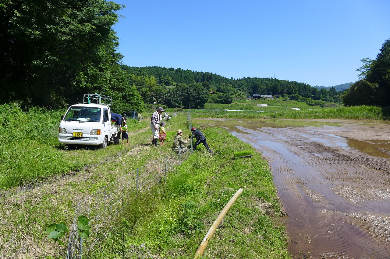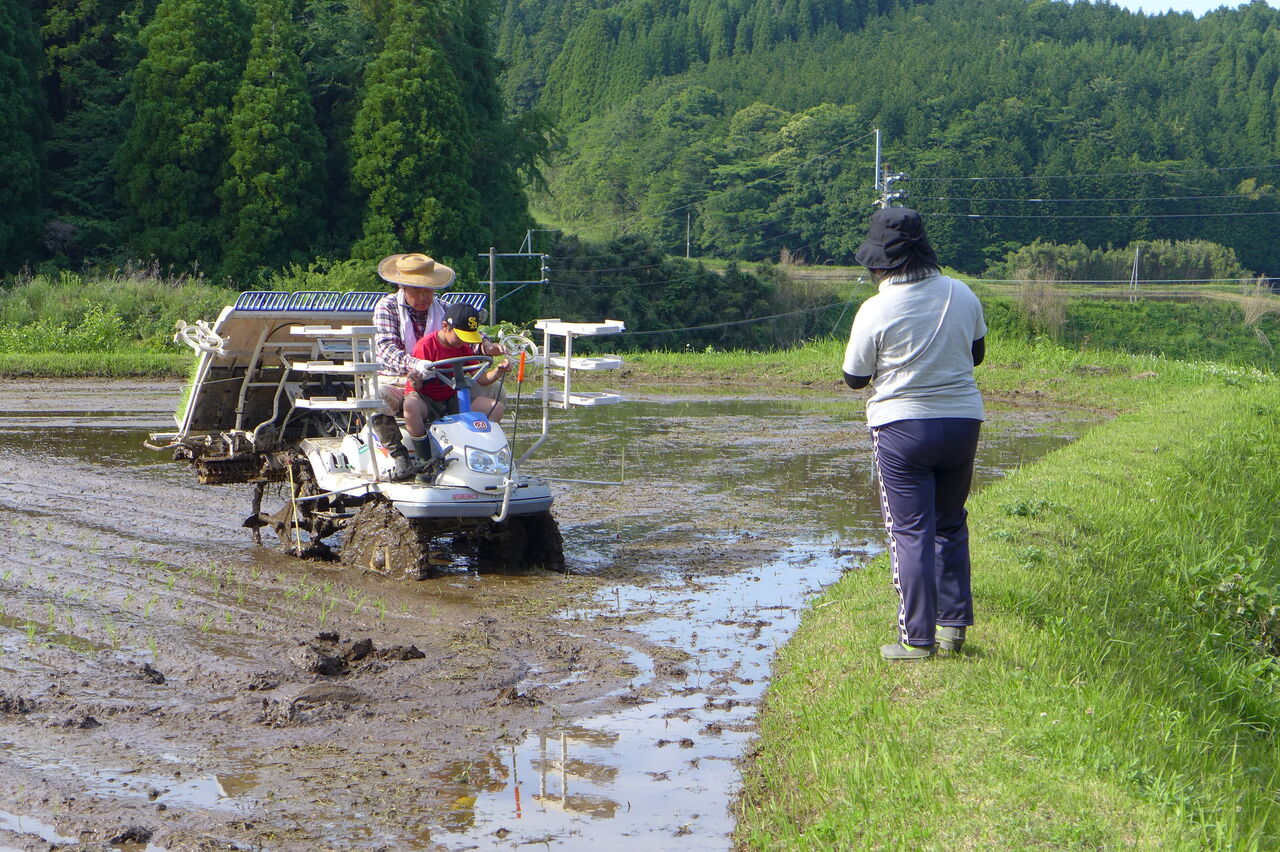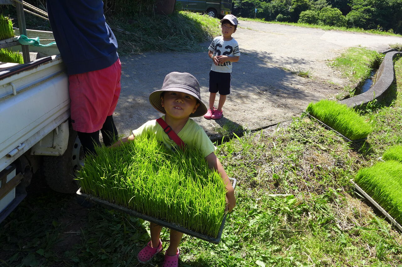 20250605瀧下さんが預かる田植え1丁八反(竹田市直入町梶屋・水口・二又地区)今年は暮らす実験室IKIのみなさんこども連れ応援団のおかげで完了!!
