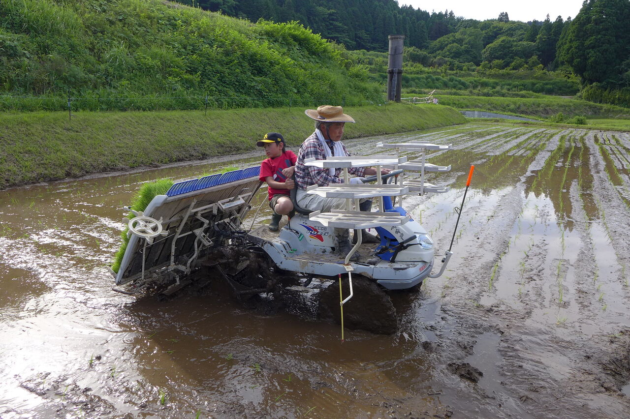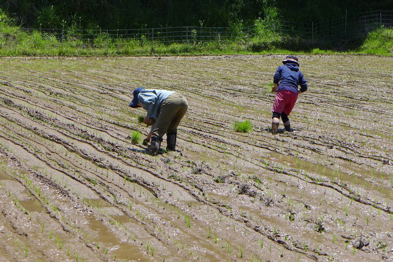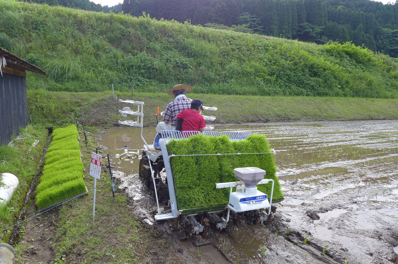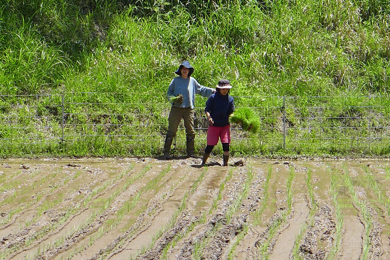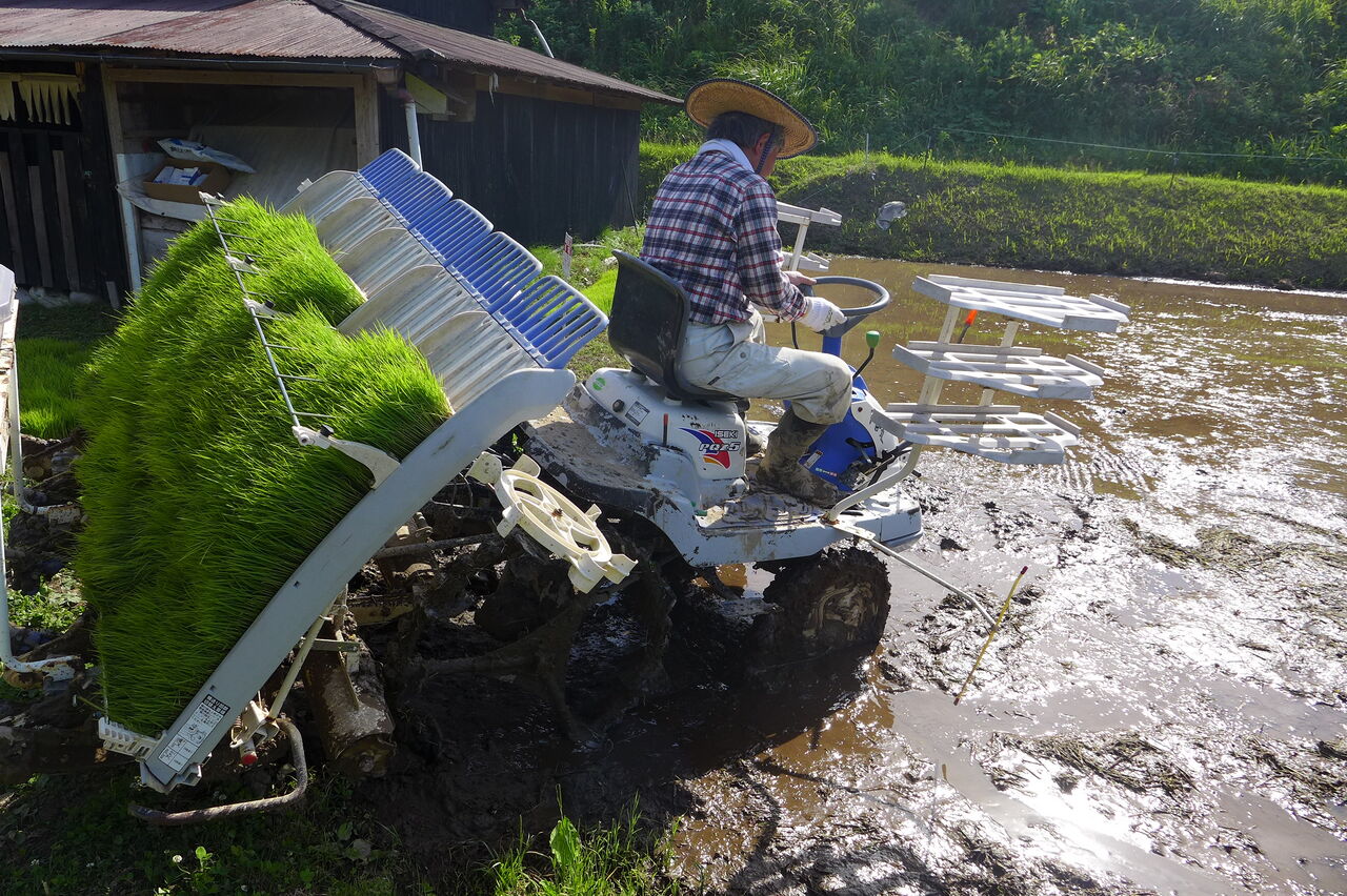 20250605瀧下さんが預かる田植え1丁八反(竹田市直入町梶屋・水口・二又地区)今年は暮らす実験室IKIのみなさんこども連れ応援団のおかげで完了!!