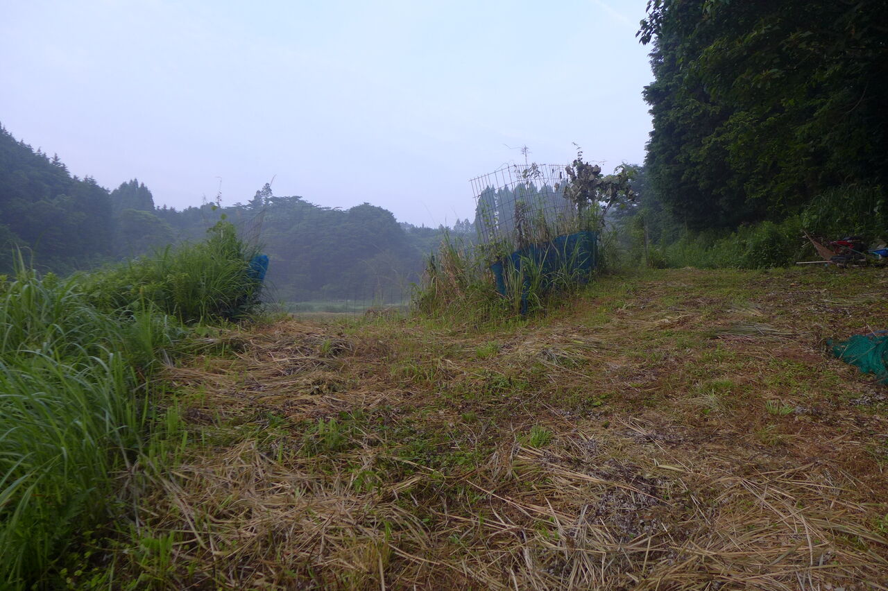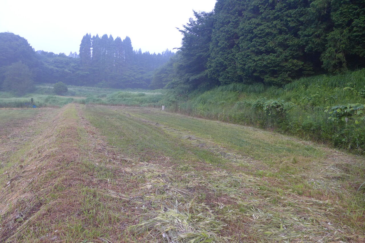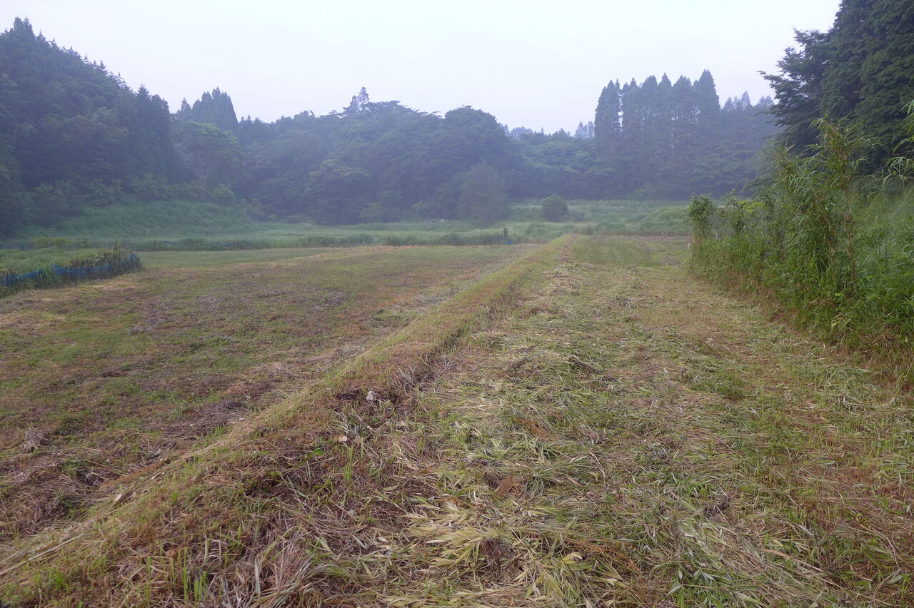 20250705この地に農業高校生たちと岡大豆を蒔いて育てるプロジェクトサイト開始。クワマン桑島孝彦さん・瀧下雅幸さん、竹田市直入町梶屋の耕作放棄地蘇生へ。