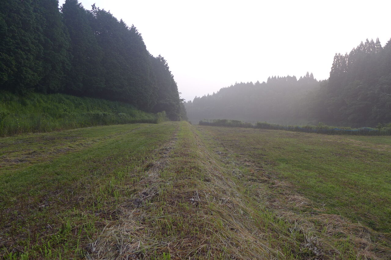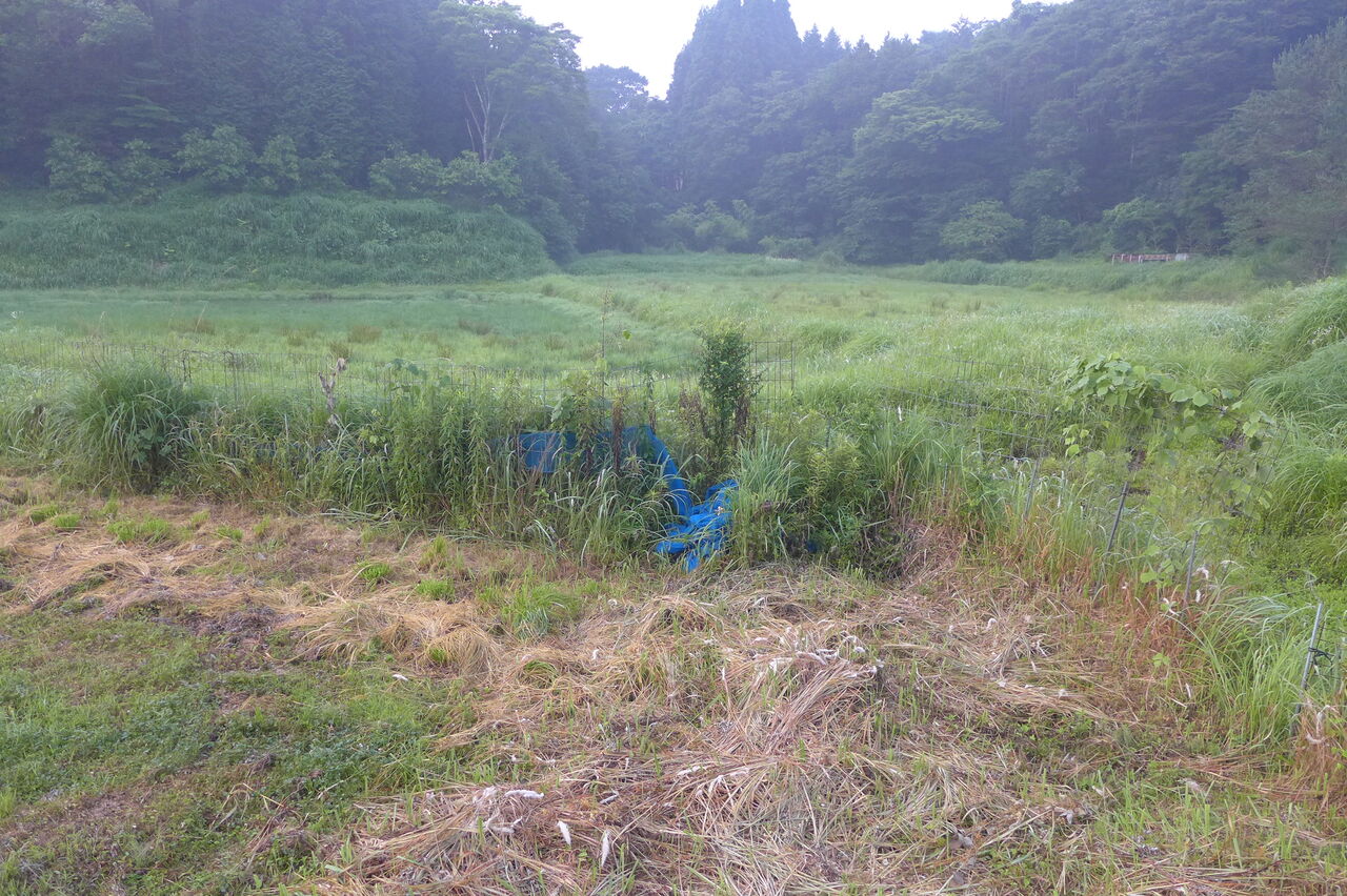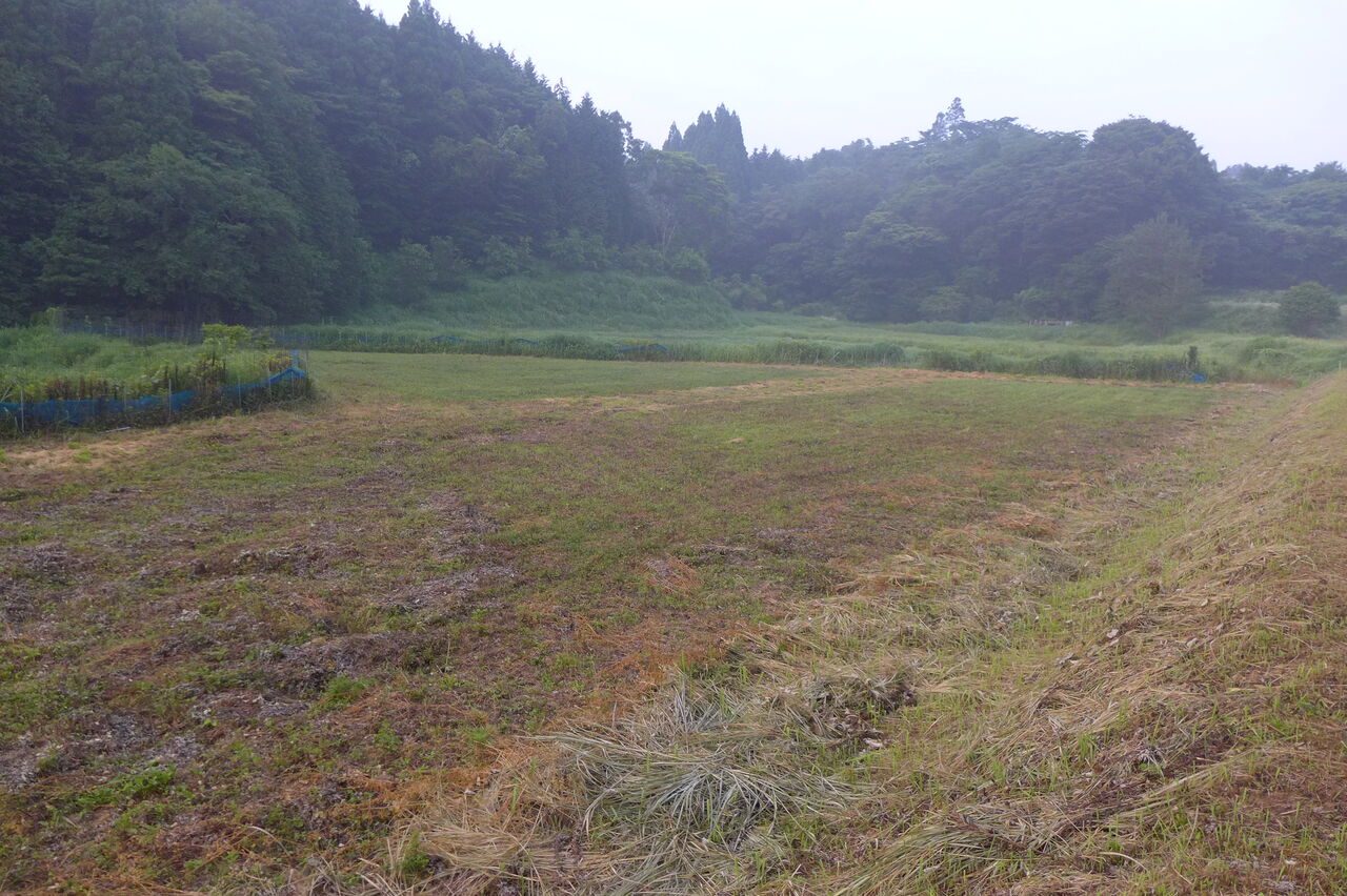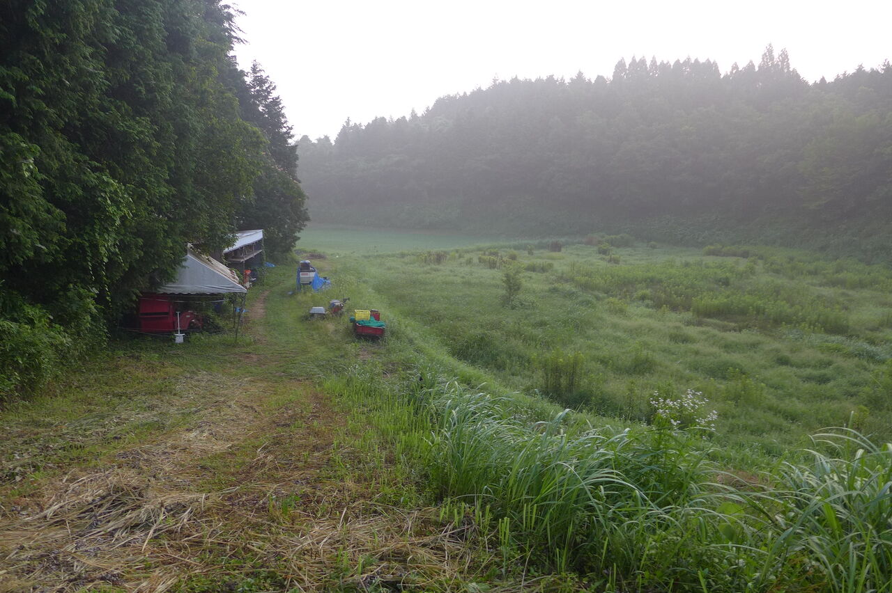 20250705この地に農業高校生たちと岡大豆を蒔いて育てるプロジェクトサイト開始。クワマン桑島孝彦さん・瀧下雅幸さん、竹田市直入町梶屋の耕作放棄地蘇生へ。