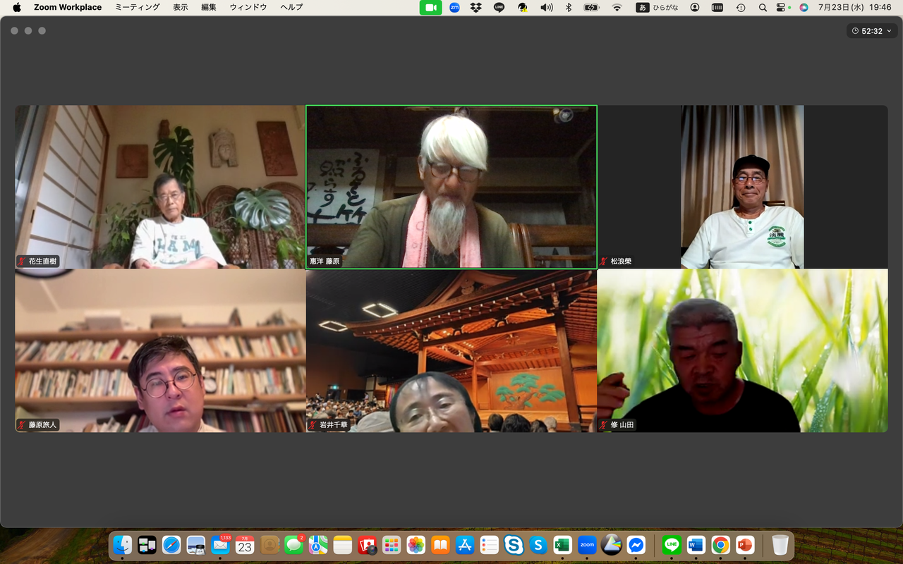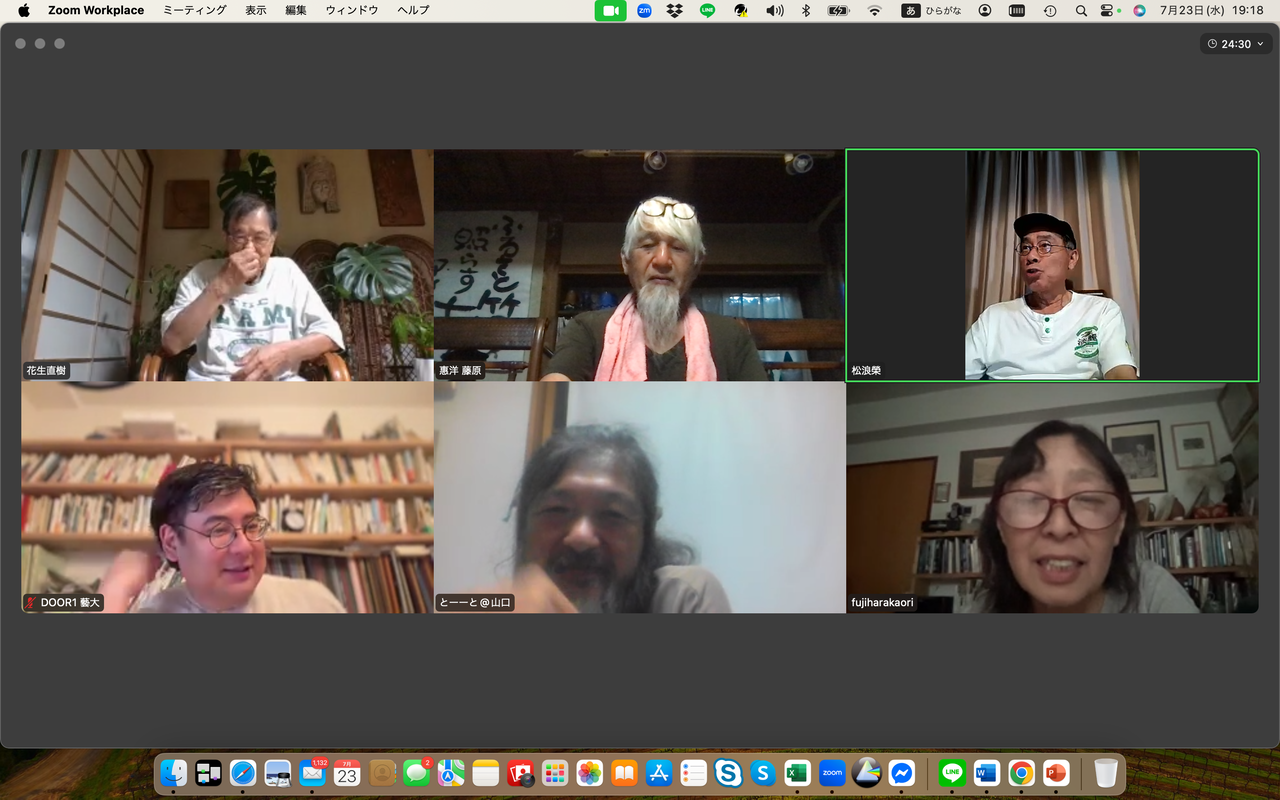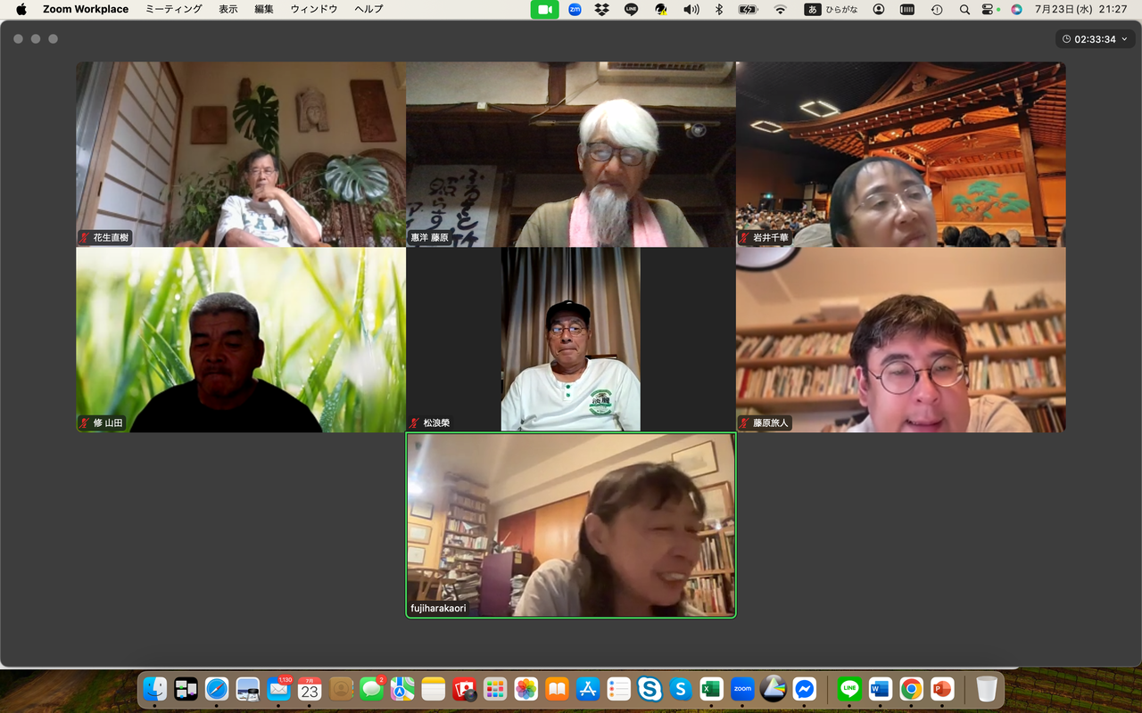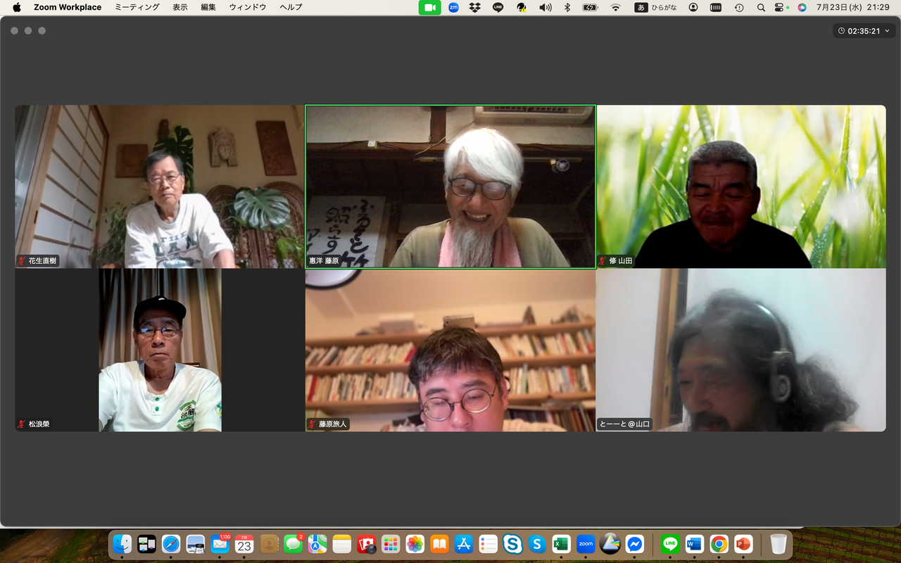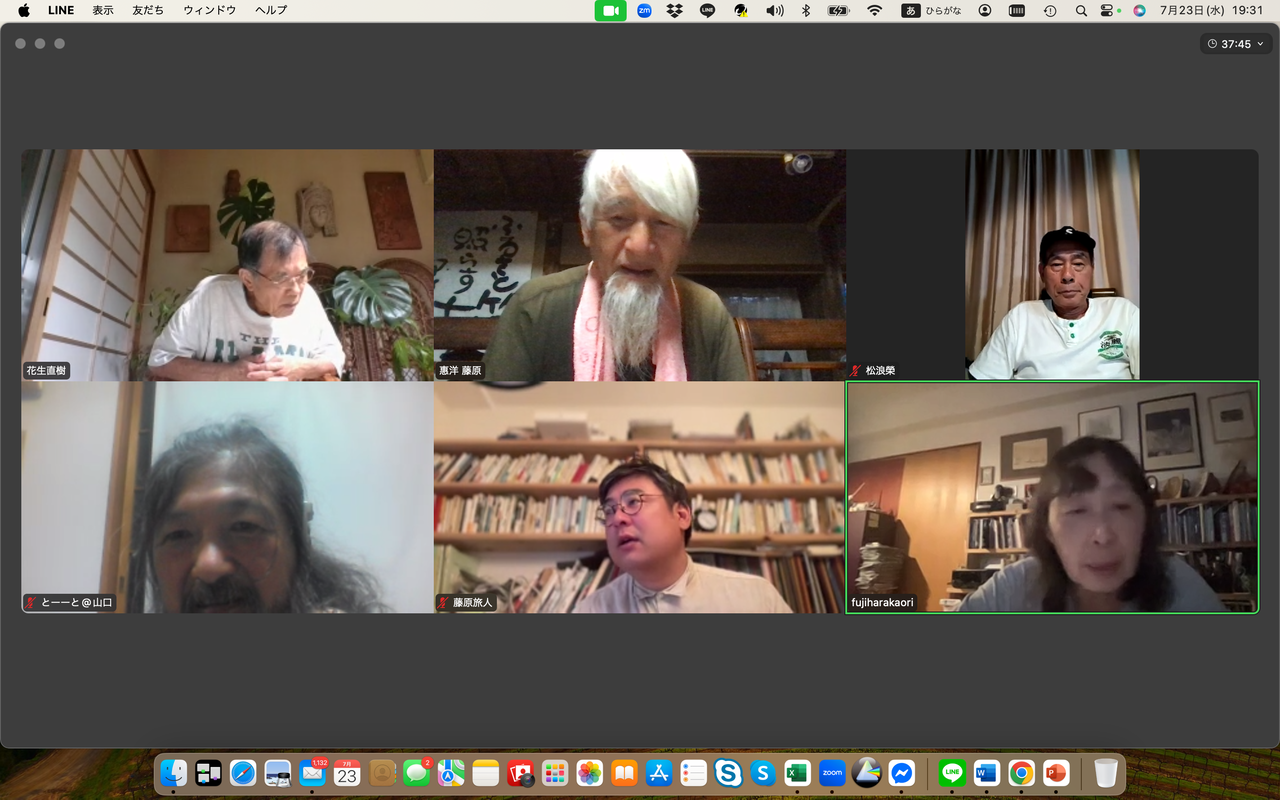藤原馨は定例ゼミスタート直前先ほどまで国東シュタイナー学校のオンライン会議に参加していたことを報告、選挙について自民党は大敗したが表面的な問題が多すぎる、薬害エイズ犠牲者を代表し参院に出ていた候補が落選したことが残念だったと述べた。日本の教育システムが政治への関心を育成していないことについて懸念を表明、子どもたちが選挙に無関心である現状を痛感すると加えた。