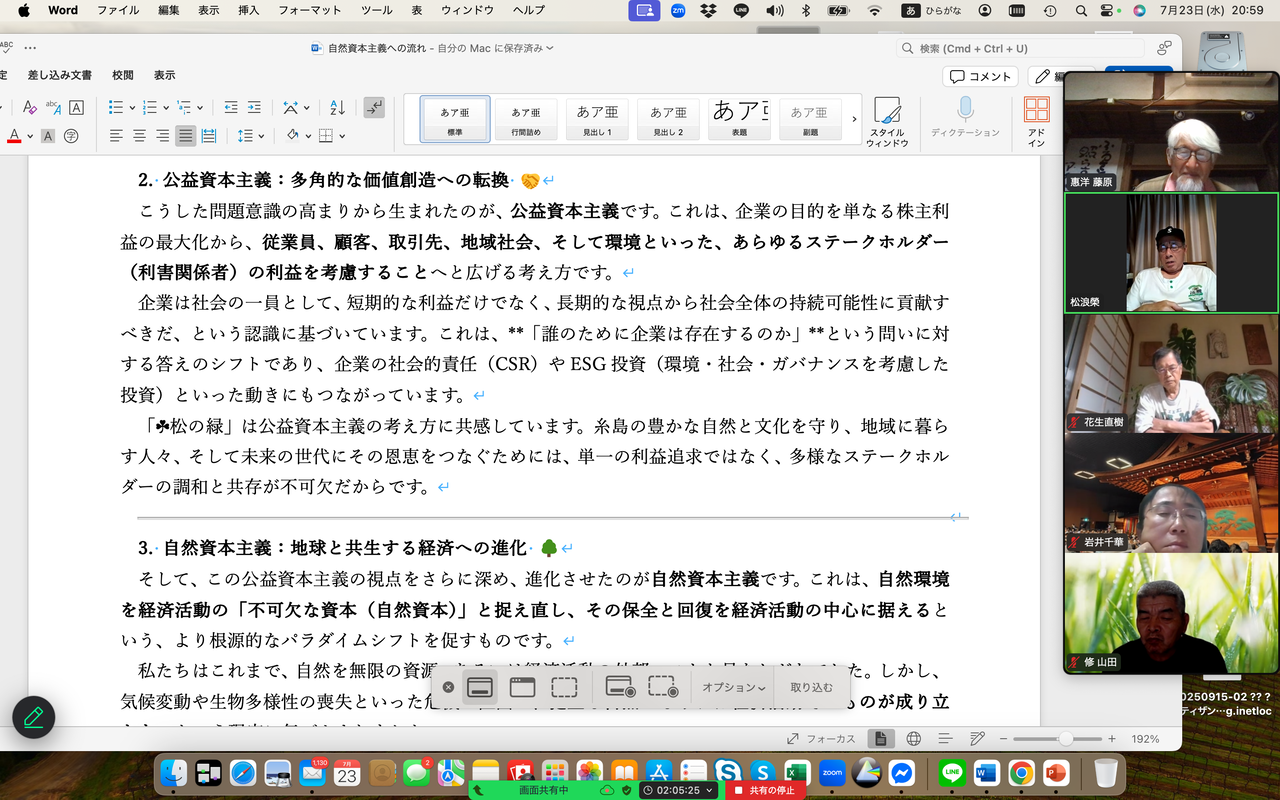 - 松浪榮: 次回のゼミで公益資本主義と自然資本主義についてさらに詳しく説明する。