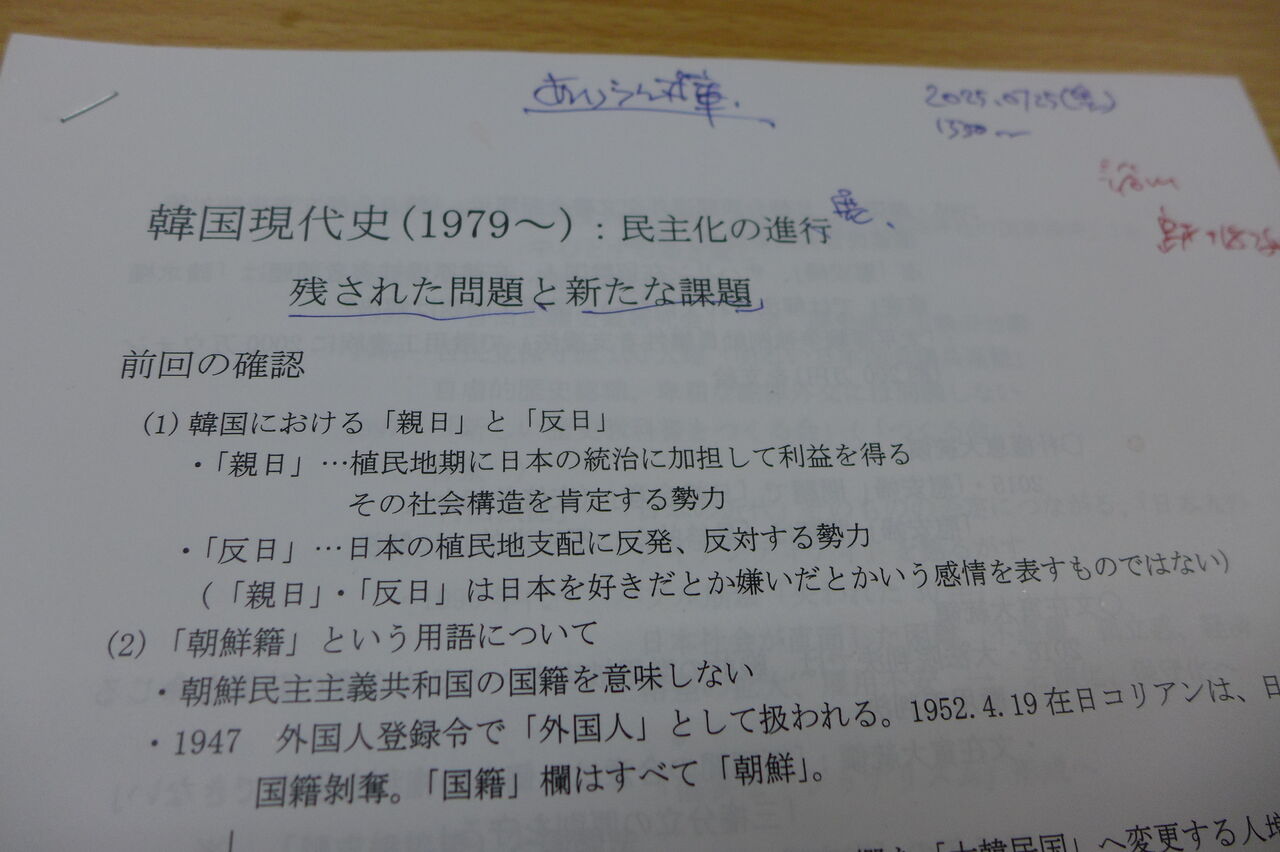 20250725森川登美江さん(大分大学名誉教授)主宰「ありらん文庫」(福岡市中央区梅光園)にて韓国現代史(1979〜民主化の進展)を聴講!