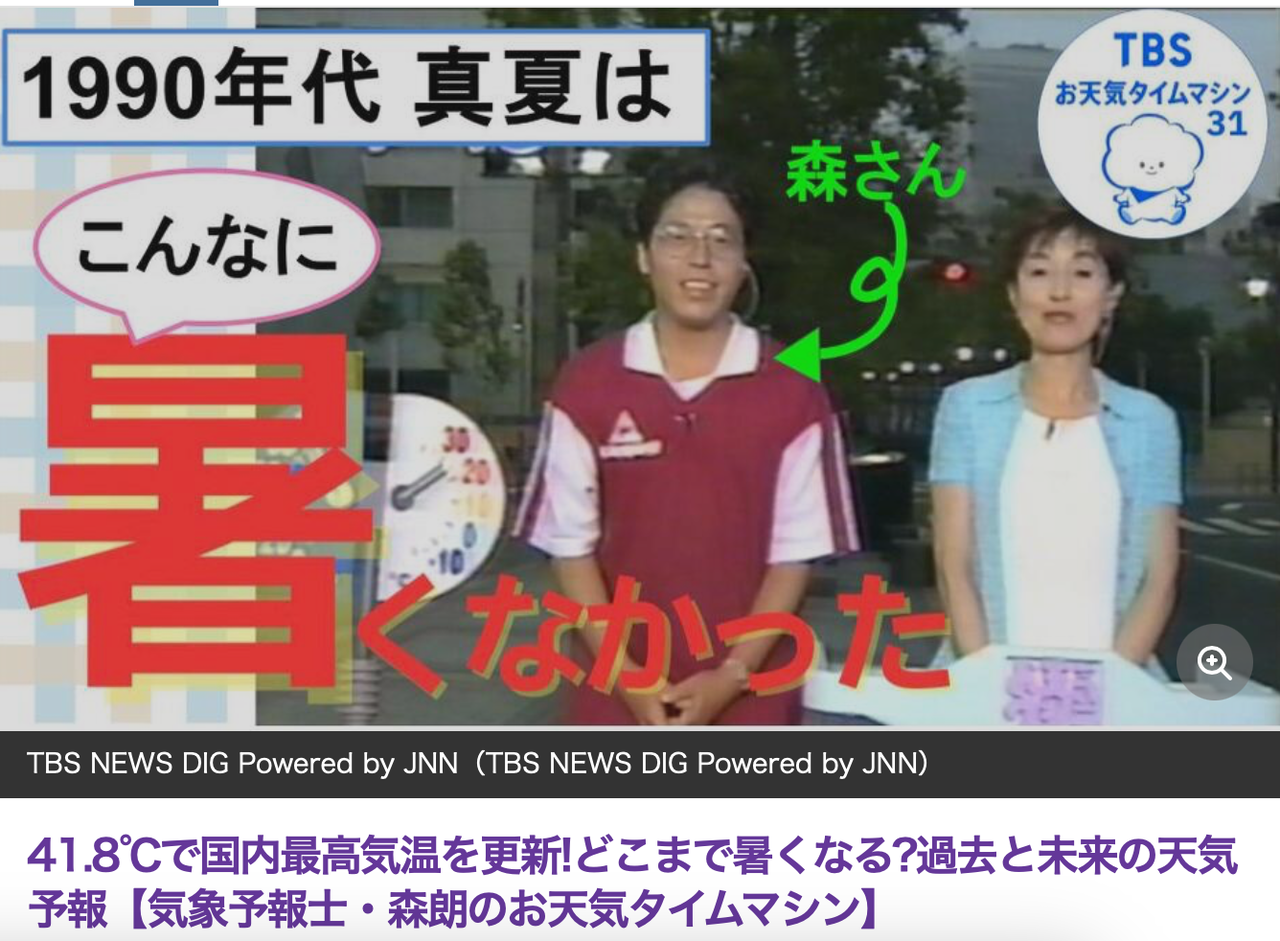 2025年7月30日、兵庫県の柏原(かいばら)で41.2℃を記録し、ついに国内最高気温が5年ぶりに更新されました。そして6日後のきょう(8月5日)、再び各地で40℃以上を記録。群馬県の桐生でも41.2℃を記録し、さらに群馬県の伊勢崎では41.8℃を記録し、国内最高気温が更新されました。まだ8月が始まったばかりですが、すでに去年(2024年)の40℃超えの日数を超え、さらに暑い日が続くと予想されています。このまま記録更新となるのでしょうか?(アーカイブマネジメント部 萩原喬子) 【写真で見る】「お天気クジラ」(1997年放送)若かりし頃の森朗さんと戸田恵美子アナウンサー(当時) ■41.8℃!!5年ぶりに国内最高気温を更新! これまでの国内最高気温は2018年7月23日の埼玉県・熊谷と2020年8月17日の静岡県・浜松で記録された41.1℃でした。「暑い、暑い」と毎年言われながらも、なかなか更新されなかった最高気温。ついに先月30日(2025年7月30日)、兵庫県丹波市の観測地点・柏原(かいばら)で午後2時39分、41.2℃を記録し、5年ぶりの国内最高気温の更新となりました。そしてきょう(8月5日)、群馬県の伊勢崎では41.8℃を記録し、さらに最高気温更新となりました。 森さんによると、気温が上昇した背景には地形と風向きが関係していると言います。 気象予報士 森 朗氏: 地図で見ると縦に並んでいる兵庫県・西脇、兵庫県・柏原、京都府・福知山、この3か所は熱がこもりやすい盆地です。最高気温を記録した柏原では南と北の両方からフェーン現象による熱い風が吹いていました。この風が重なりあったことで、特に高い気温になったと考えられます。 ■国内で40℃超えの観測地点が急増! 1875年の観測開始以降、今年(2025年)7月29日までに40℃以上を観測した地域は1都17県で、78回でした。そして今まで、北海道地方、中国地方、九州地方、沖縄地方では40℃以上の観測がありませんでした。ところが7月30日からわずか4日間で40℃以上が連続して観測され、観測地域は1都1府19県に、回数は88回と大幅に増えました。注目すべきは、7月30日に岡山県の久世で40.3℃を記録したことです。これにより観測開始以来初めて、中国地方でも40℃超えとなりました。