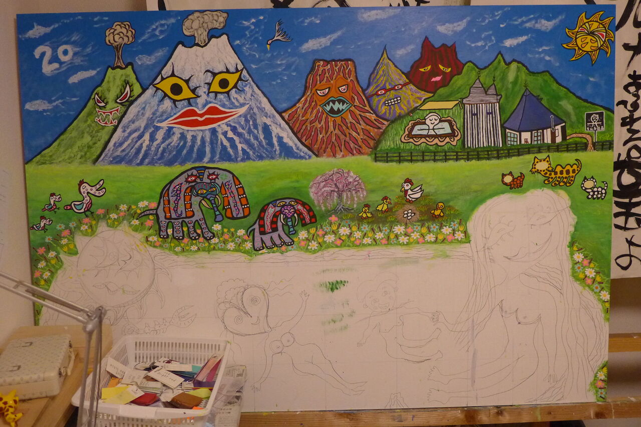 20250807大分市の芸術家霧隠竜之介さんアトリエにて作品制作激励会ならびに暑気払いを楽しみました!