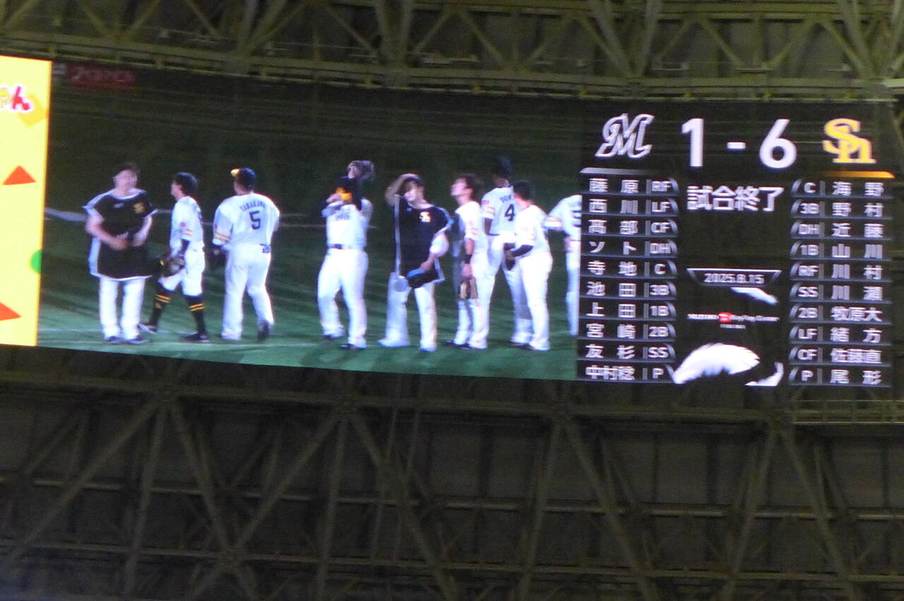 20250815ソフトバンクホークスVSロッテマリーンズ 満塁ホームランを喰らわして6対1で勝利!!