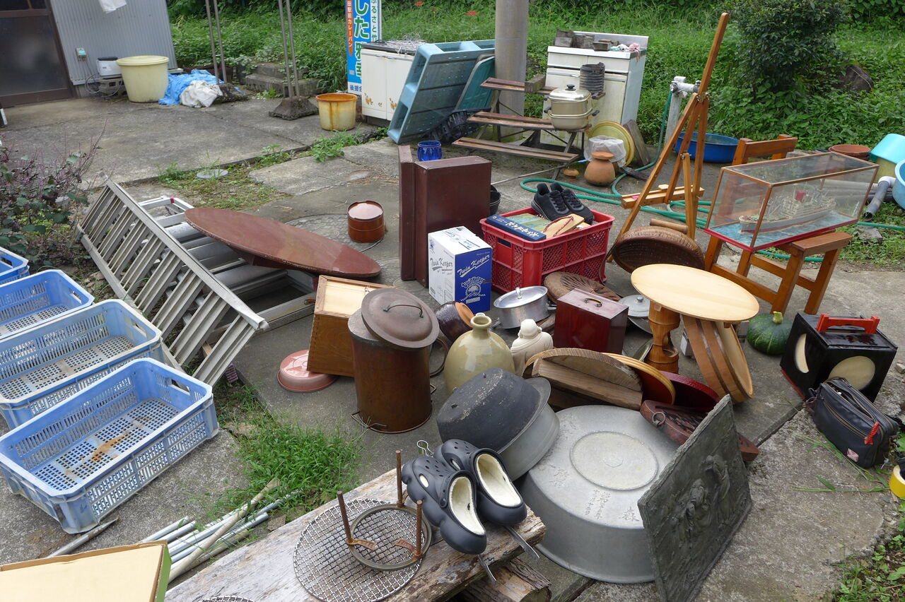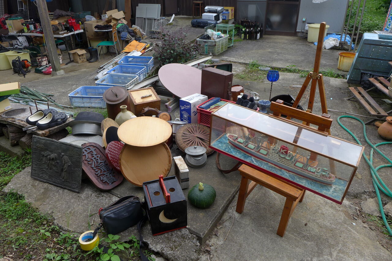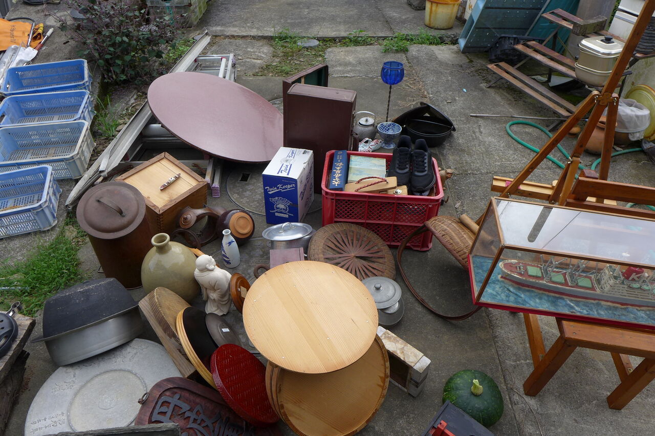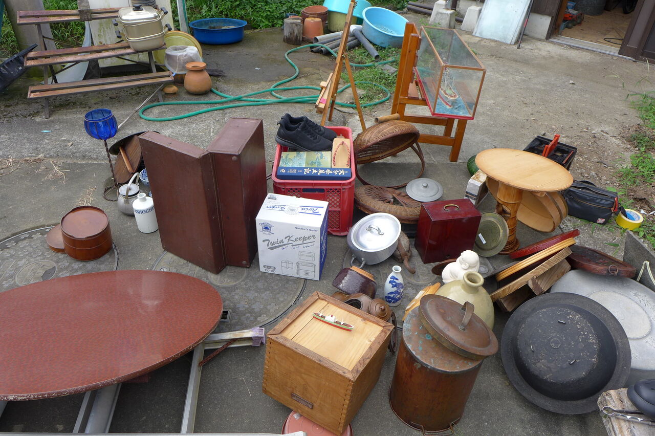 20250913瀧下雅幸さん骨董商会「源右衛門」倉庫より城下町まちかど蚤の市出店品の整理・清掃を展開!