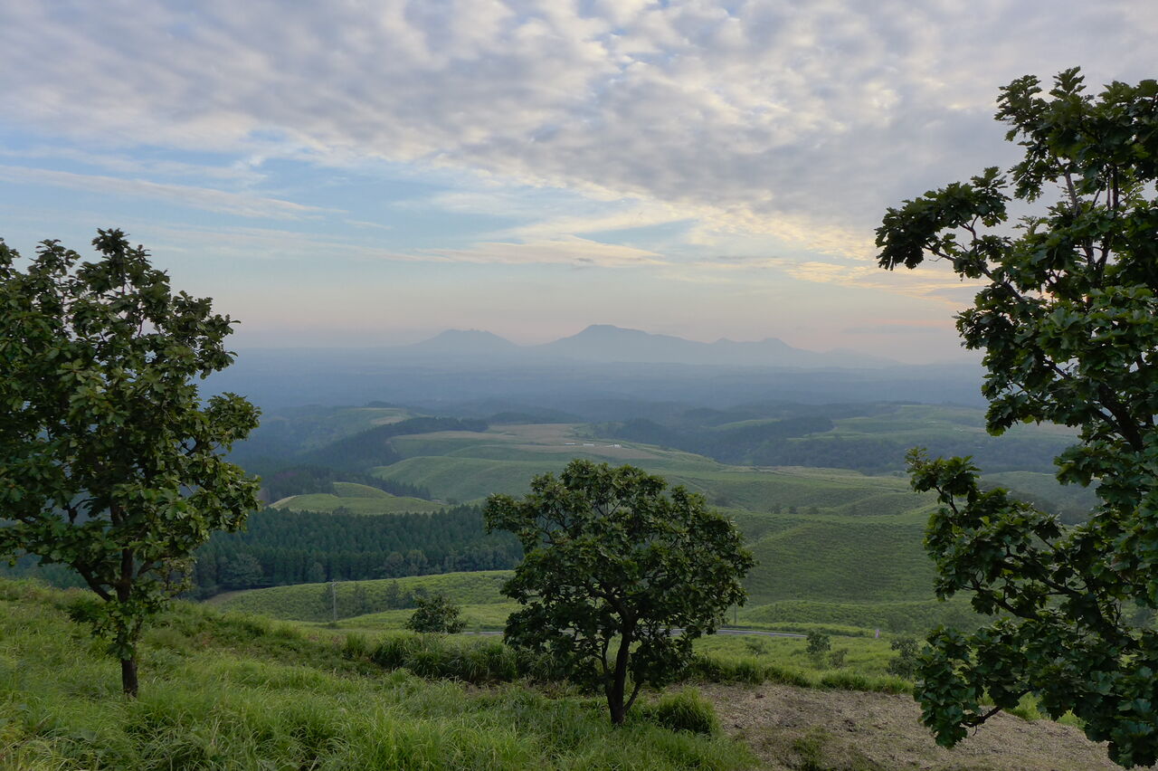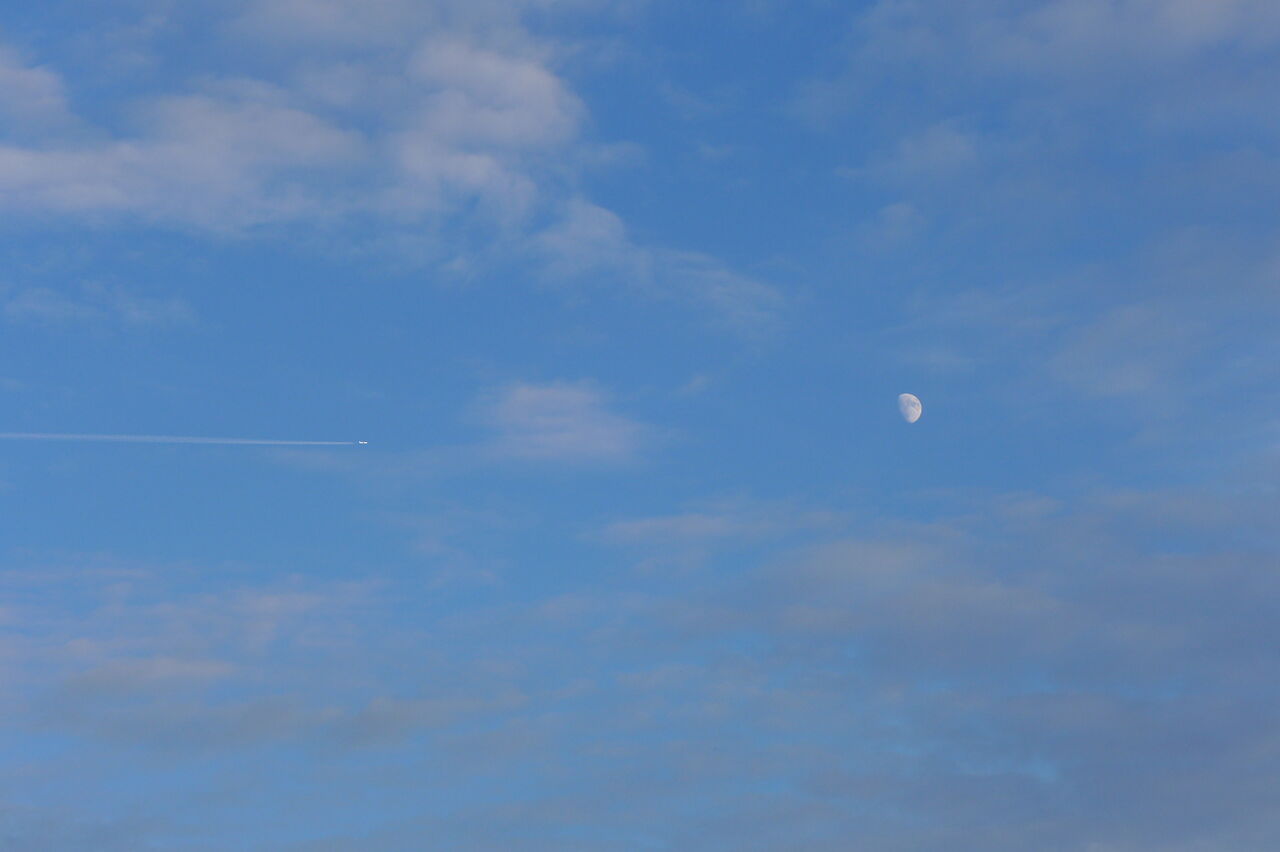 20251002阿蘇を見やりながら竹田へ!半月を超えた、鱗雲が広がる、中秋の名月が近づいてきている・・・
