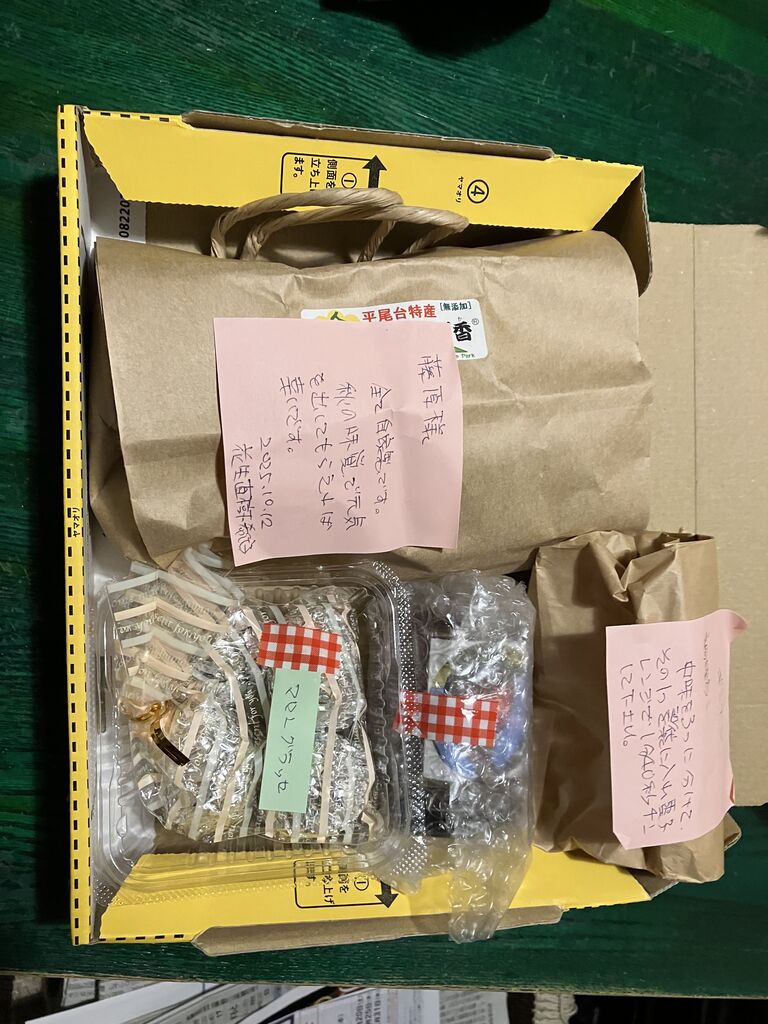 ふ印ラボ定例ゼミ(遠隔)お仲間から秋の美味しいものがゆうパックで届きました!花生直樹さんお気遣いありがとうございます!!
