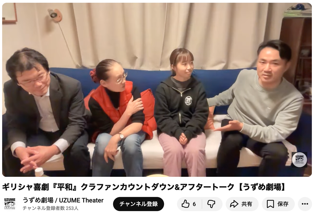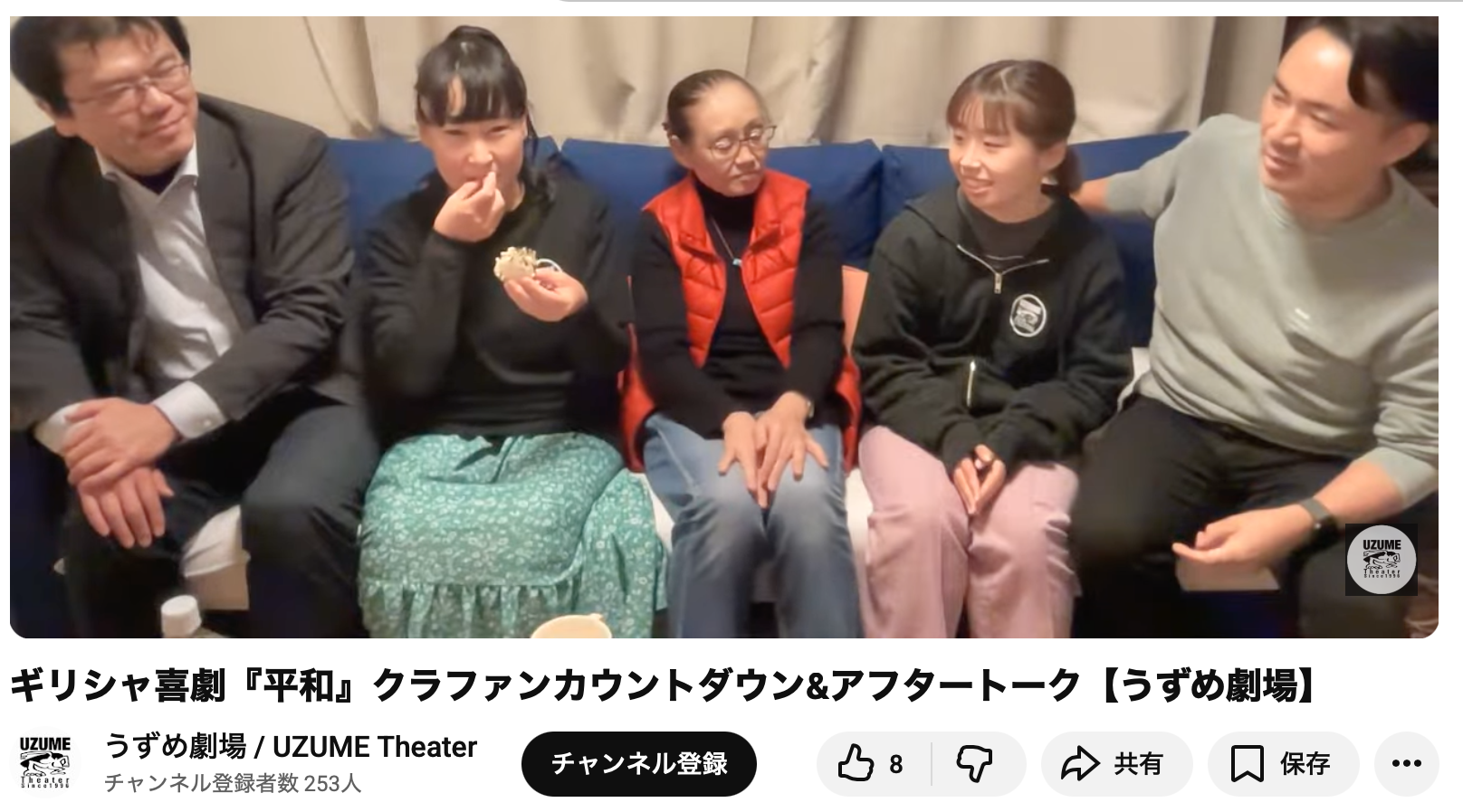 11月6日(木)20:00〜You Tubeライブを覗くと劇団「うずめ劇場」役者さんたちの『平和』トークが絶!面白い!!
