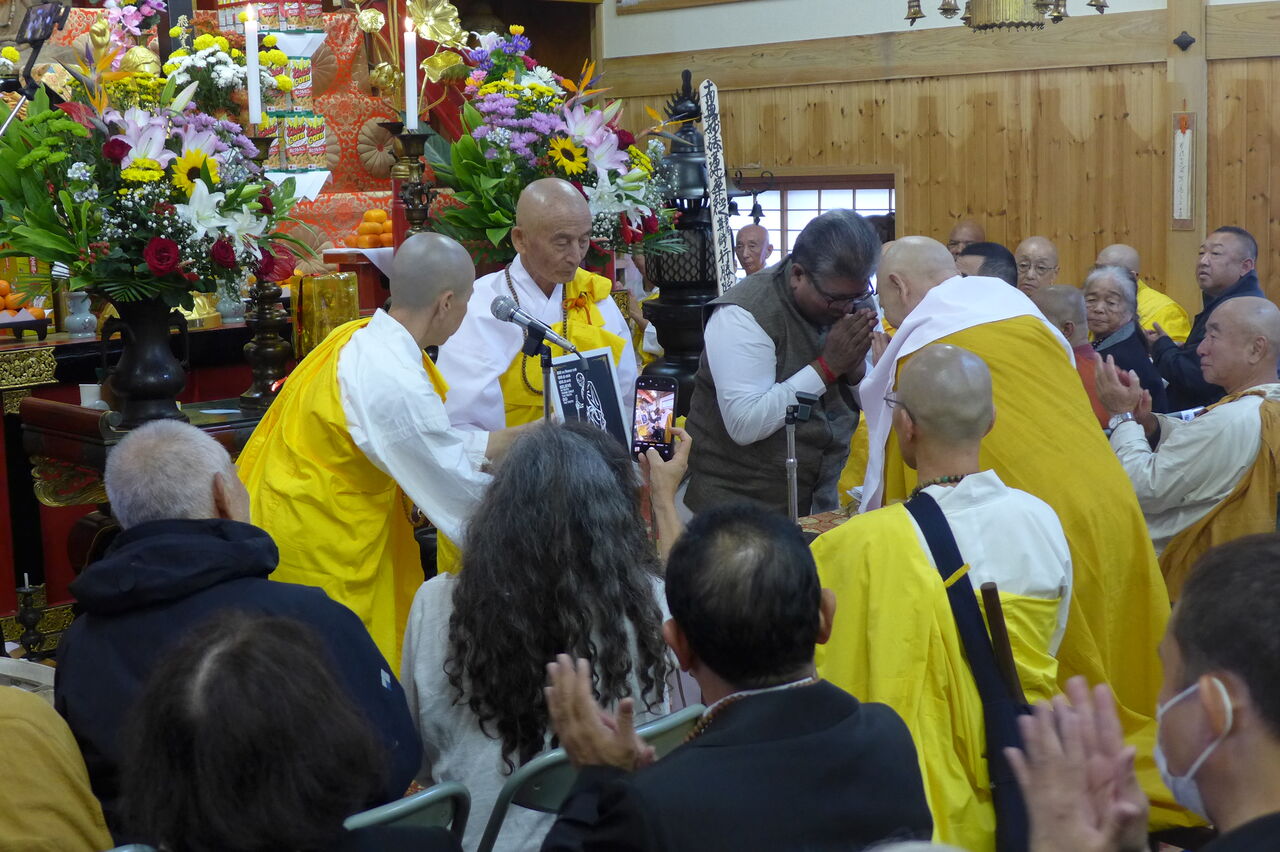 20251109嵐吹き荒ぶ中、日本山妙法寺阿蘇山仙酔峡仏舎利塔修復復興慶讃大法要へ参加!
