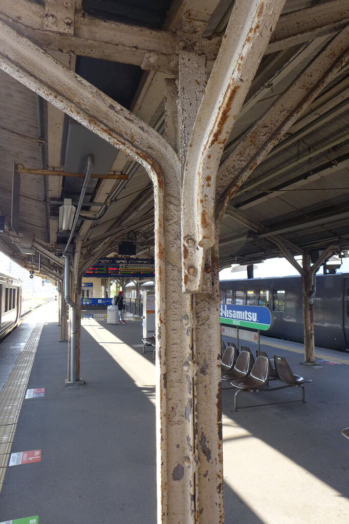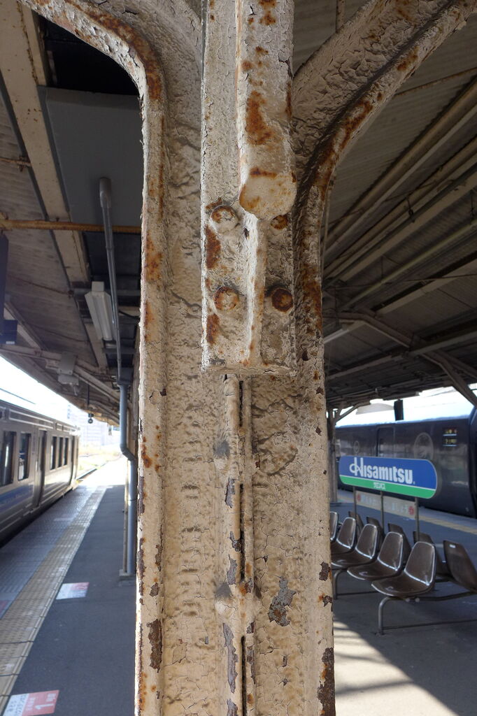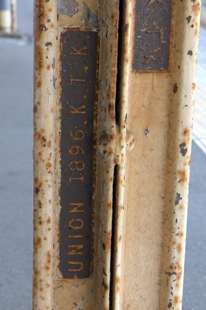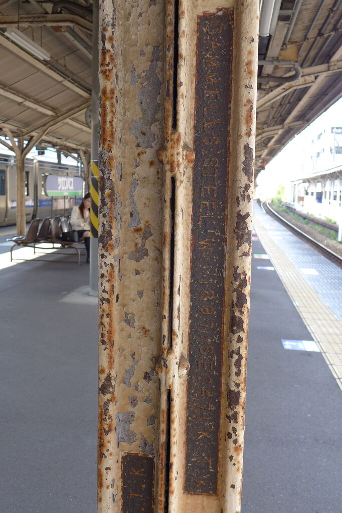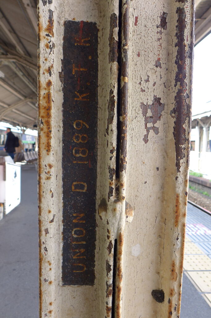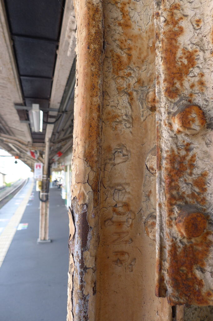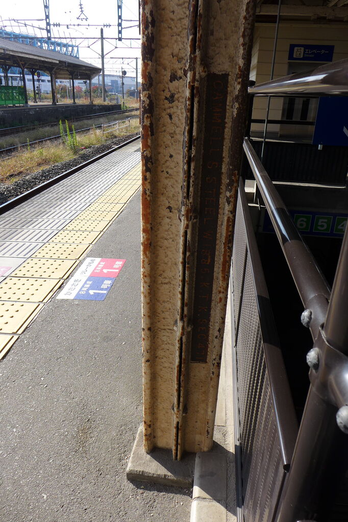 鳥栖駅(九州鉄道会社1887年明治20年開業)にて駅舎柱のロールマーク踏査