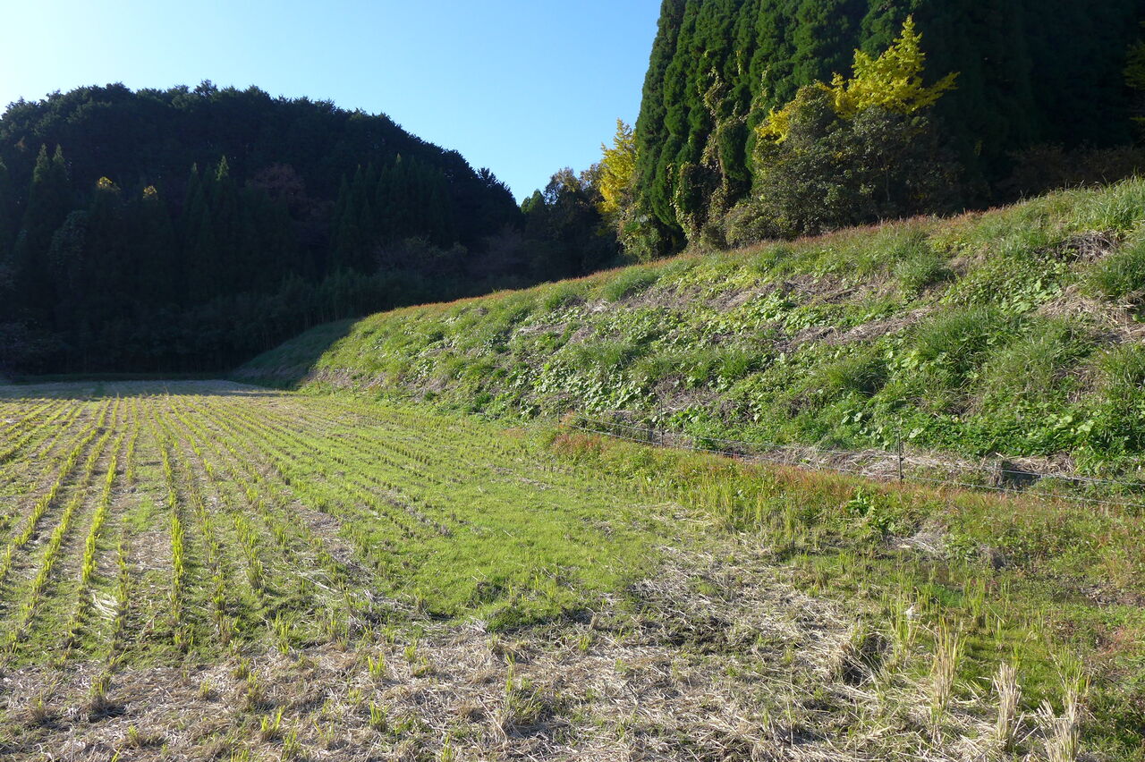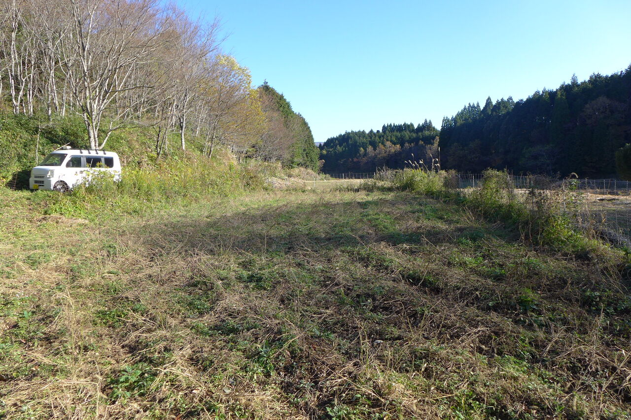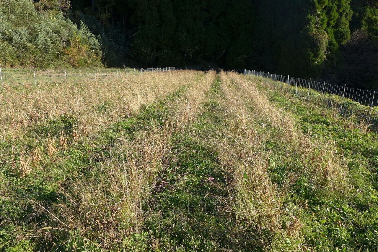 20251128朝、竹田市直入町梶屋界隈。猪の獣害で田んぼは荒らされ、期待の岡大豆プロジェクト足止め!助かった大豆畑を収穫へ!