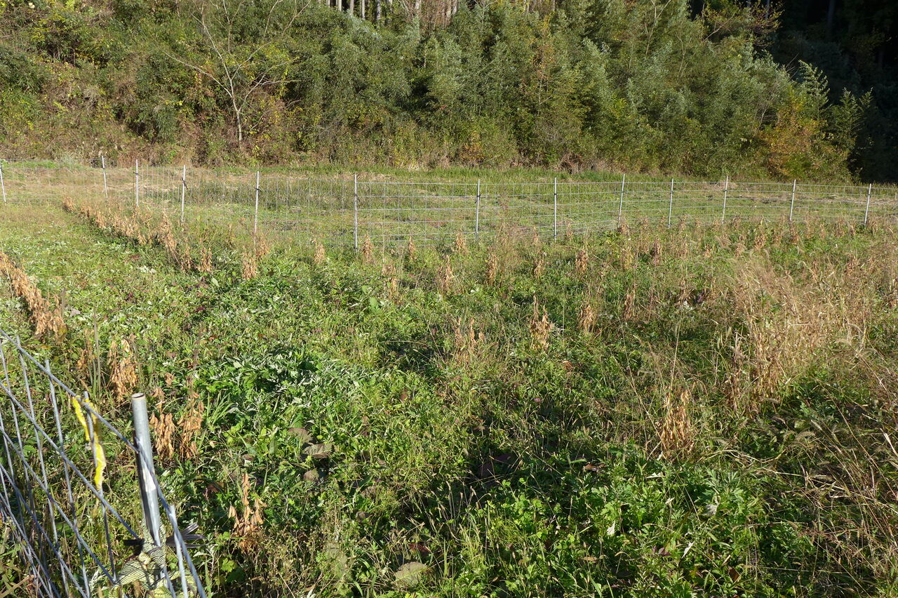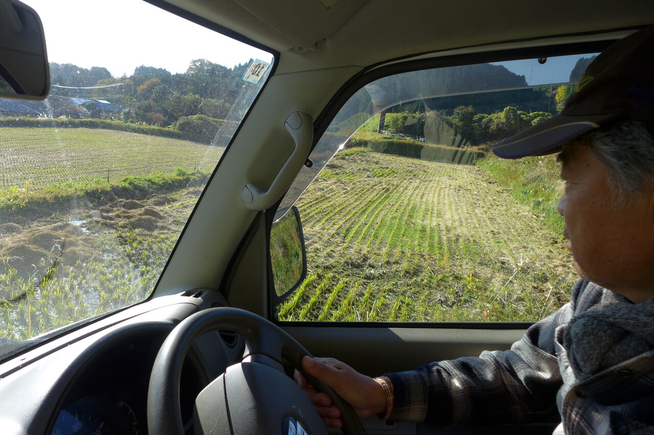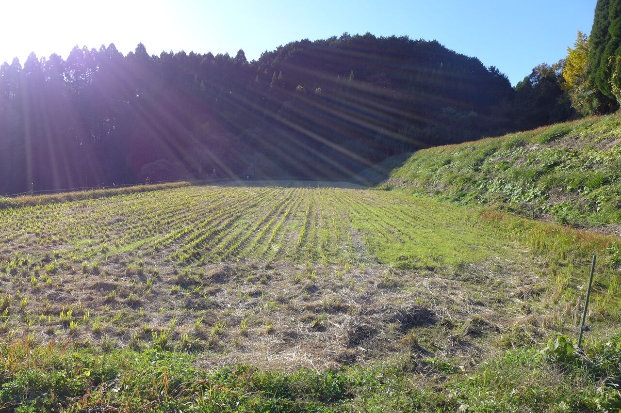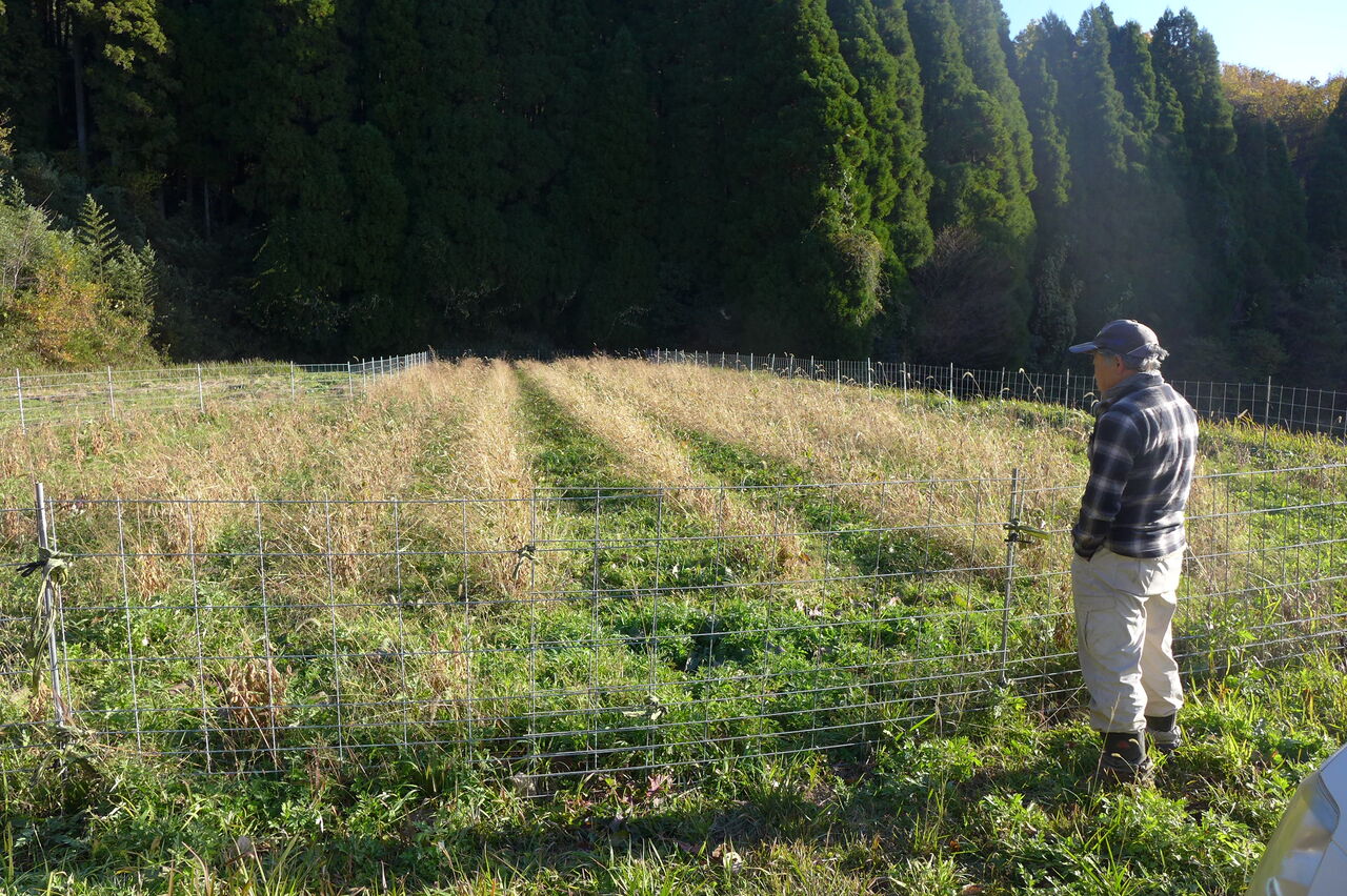 20251128朝、竹田市直入町梶屋界隈。猪の獣害で田んぼは荒らされ、期待の岡大豆プロジェクト足止め!助かった大豆畑を収穫へ!
