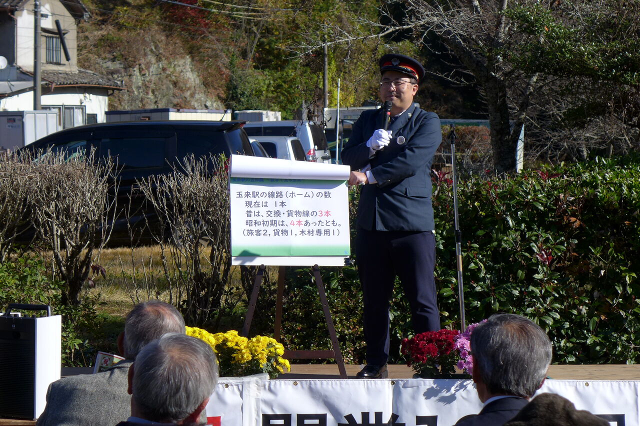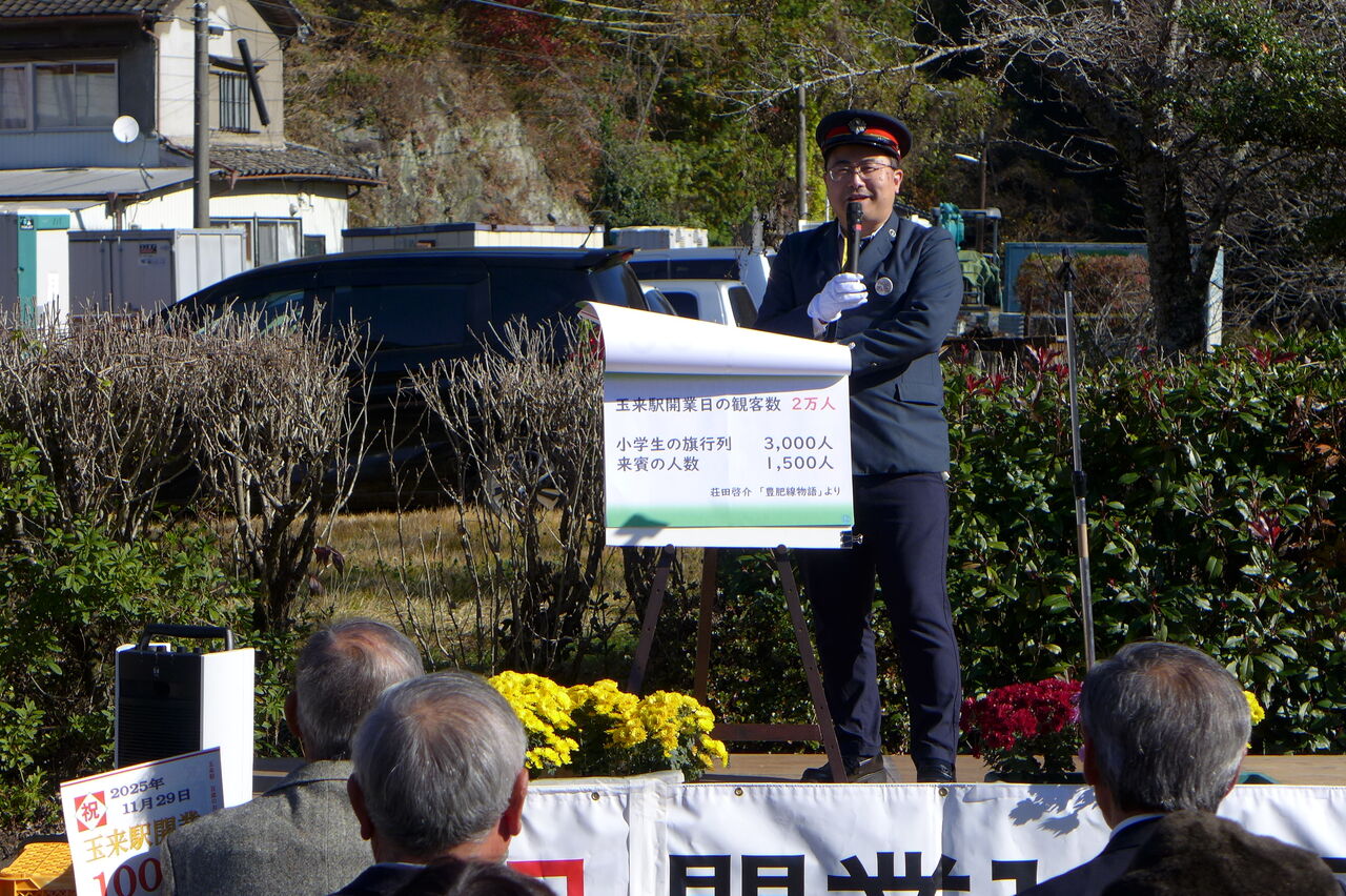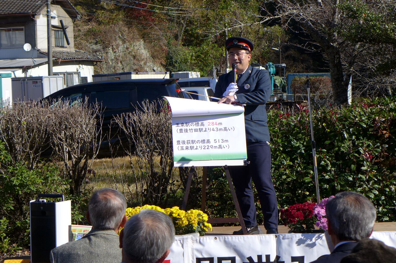 20251129豊肥線玉来駅(竹田市玉来)開業百年記念式典を参与調査!(その2)山田哲也さん(大分鉄道ファン倶楽部副会長)大活躍!