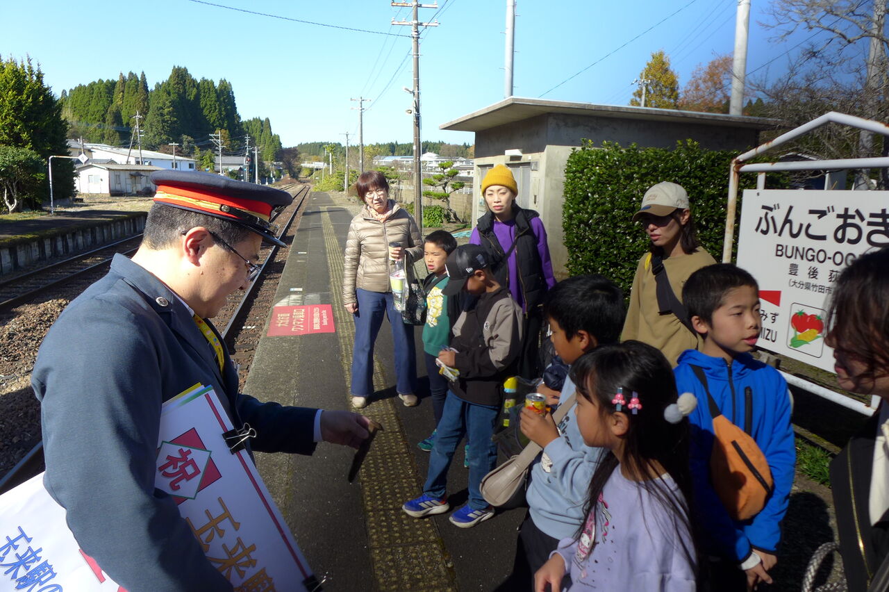 20251129豊肥線玉来駅(竹田市玉来)開業百年記念式典を参与調査!(その3)元気の良い子どもたちと豊肥線玉来駅〜豊後荻駅を往復!