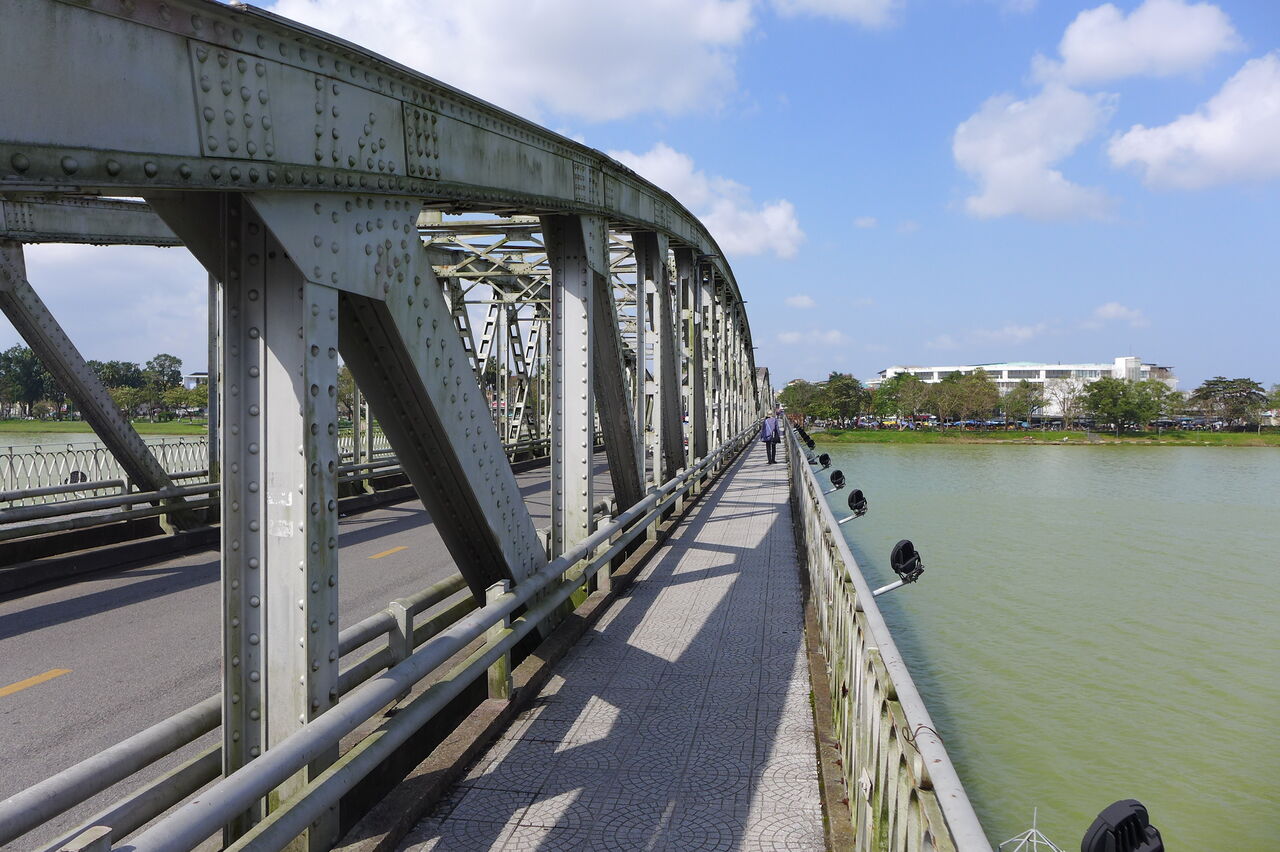 第7次ベトナム地域固有・文化資源踏査(その24)新旧市街地を分けるフォン川に架けられたチャンティエン橋(1899年創建、現在のものは1991〜95再建)再訪!