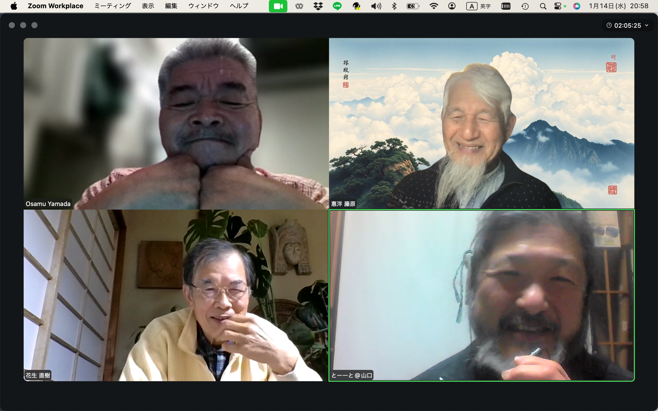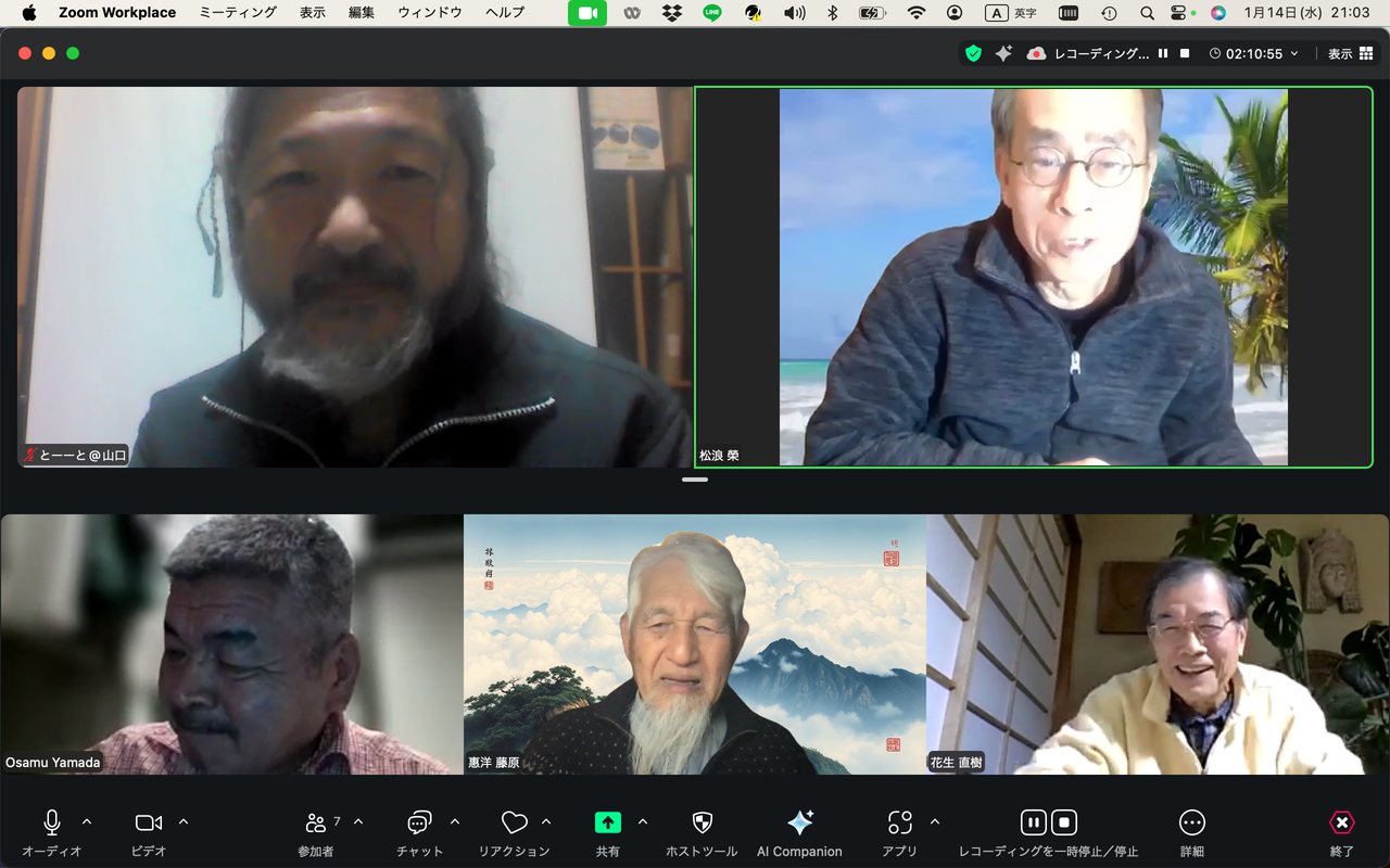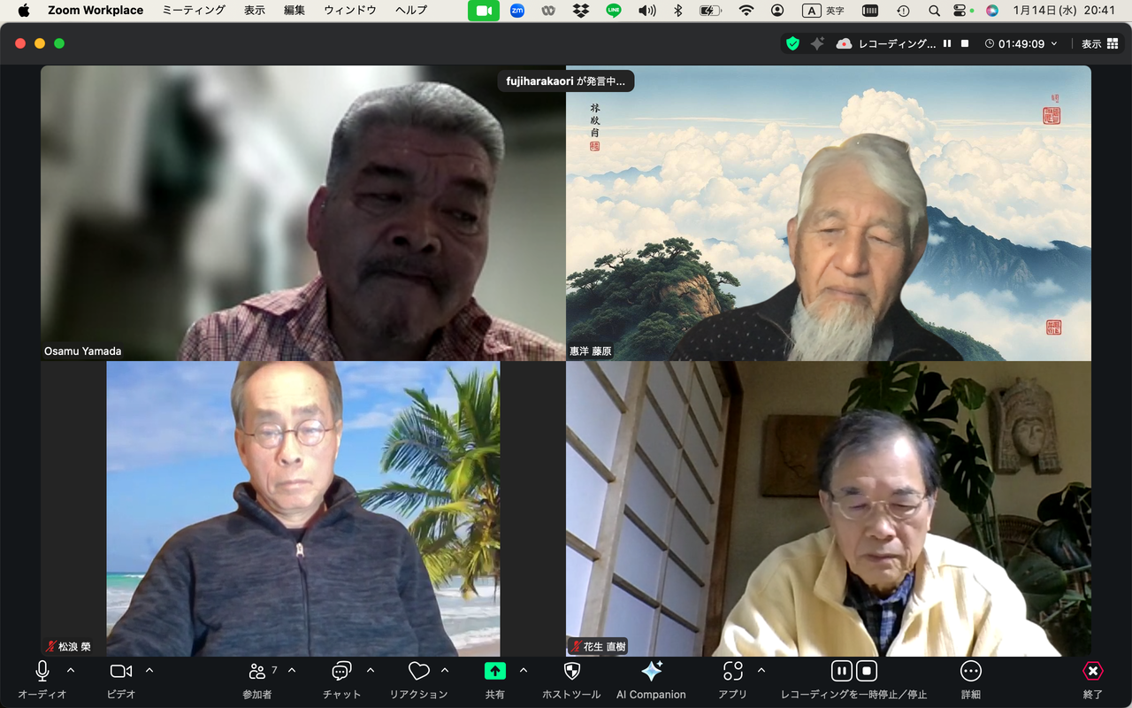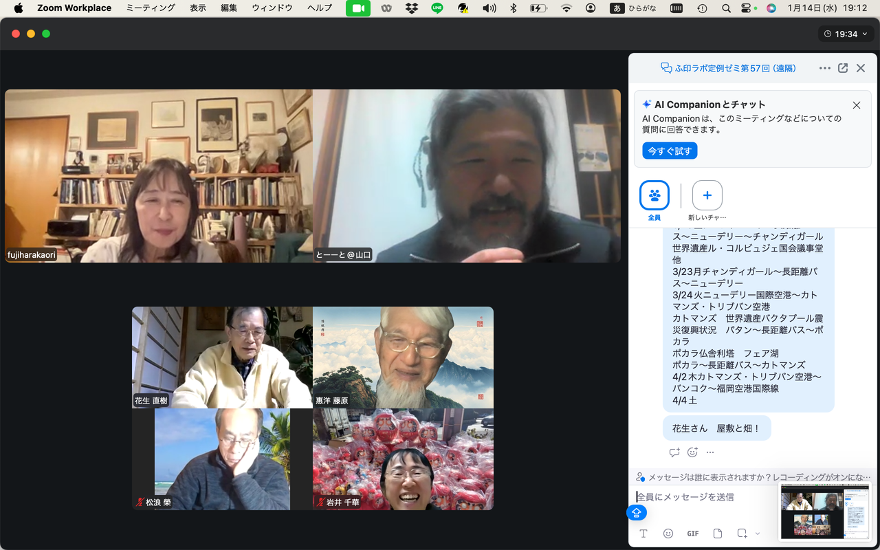 20260225ふ印ラボ定例ゼミ第50回を南インド・サンカランコービル滞在中のふ印ボス(藍蟹堂藤原惠洋)とZOOMで繋いで開催!途中で途切れました。