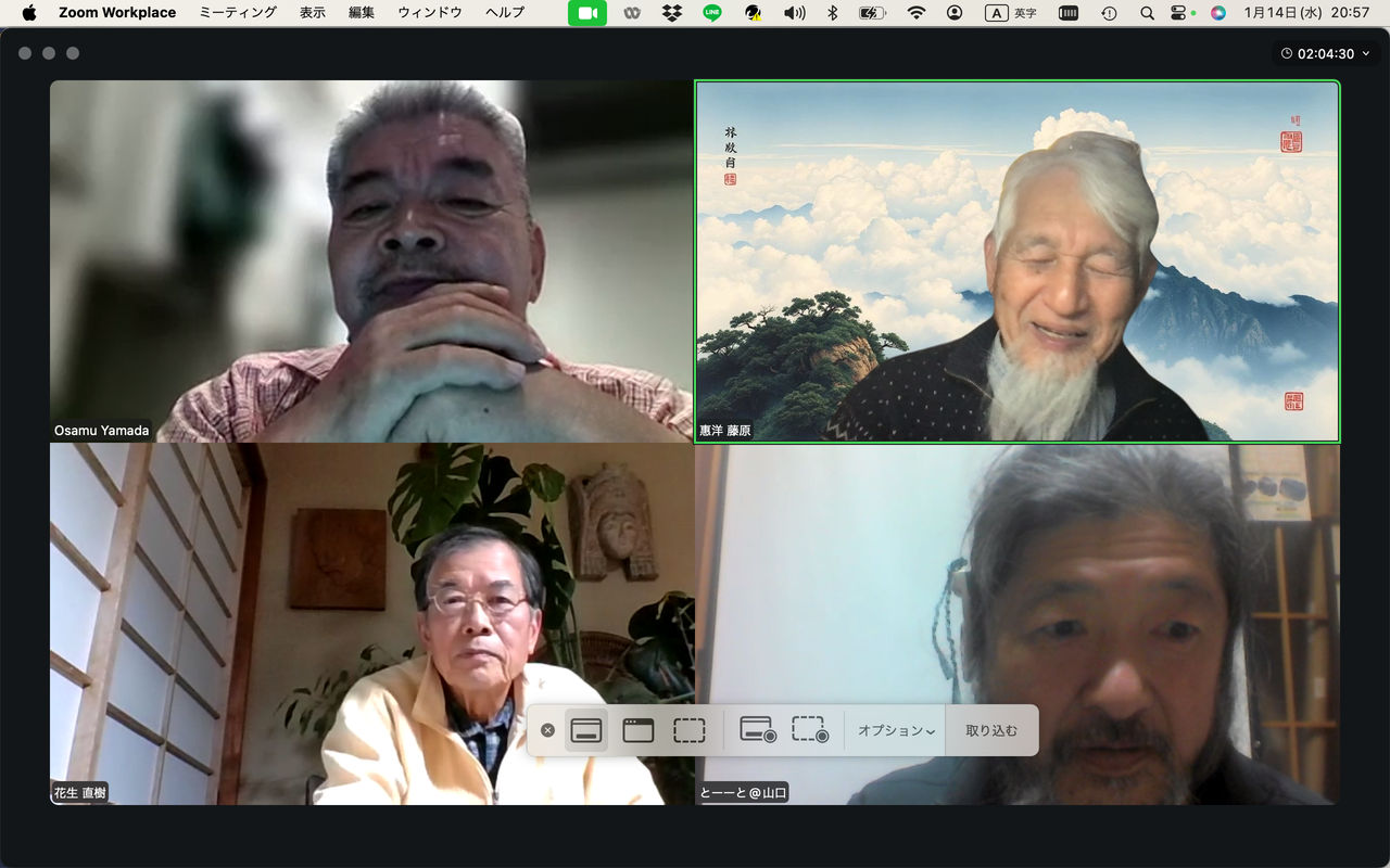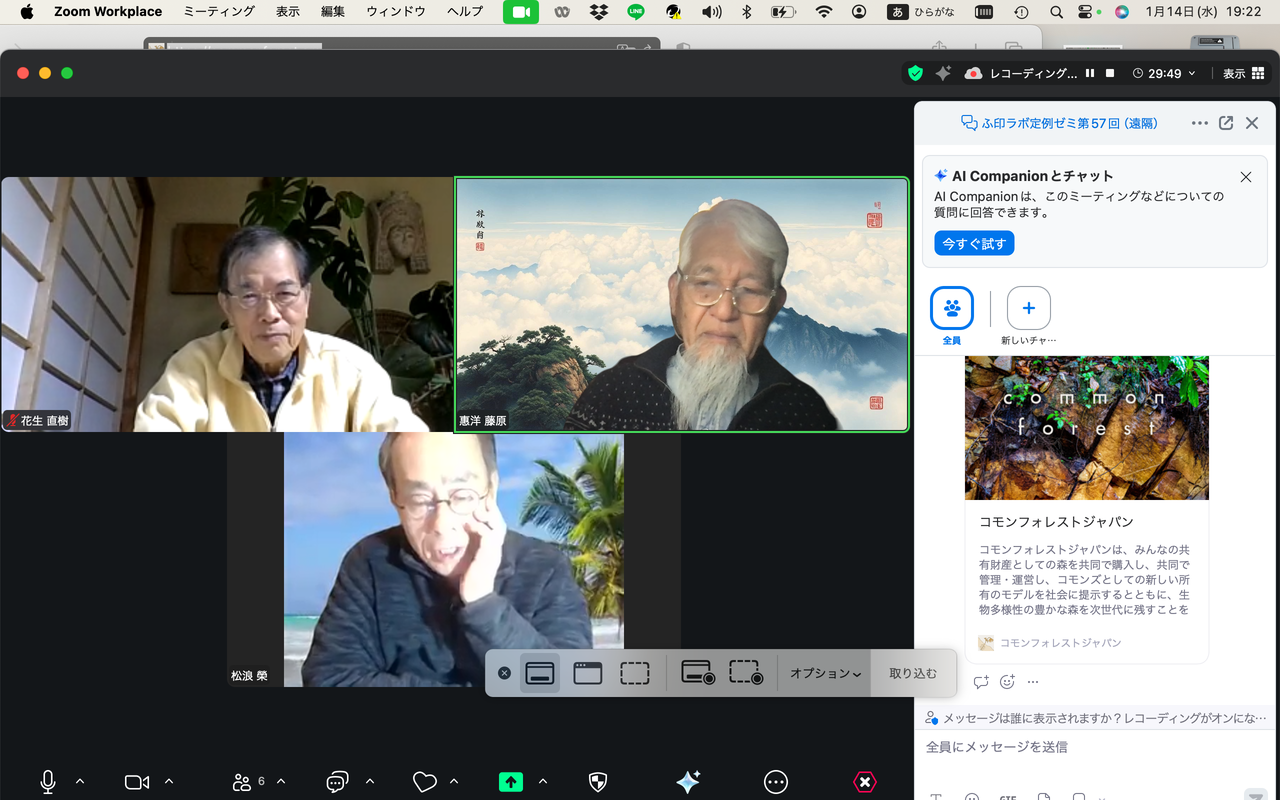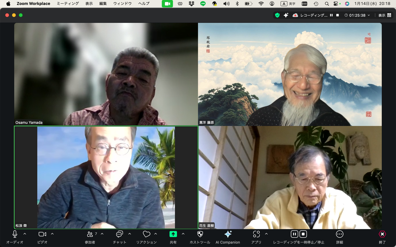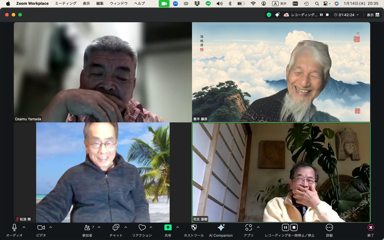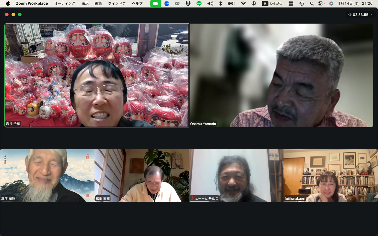 20260225ふ印ラボ定例ゼミ第50回を南インド・サンカランコービル滞在中のふ印ボス(藍蟹堂藤原惠洋)とZOOMで繋いで開催!途中で途切れました。