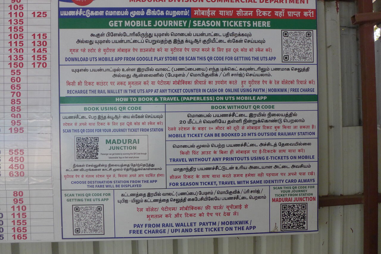 サンカランコービル駅から鉄道にて北上、マドゥライ・ジャンクション駅へ。