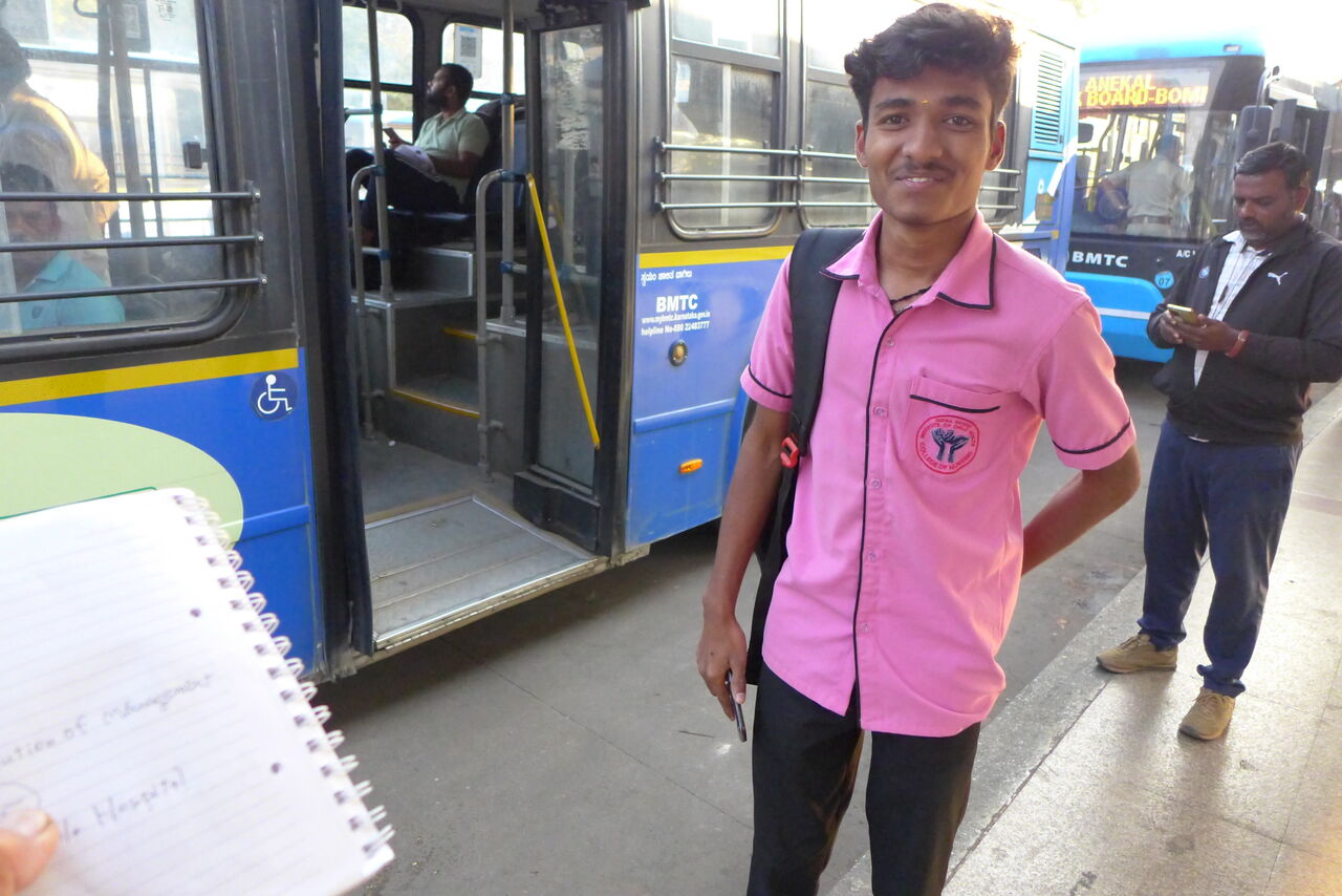 IIMB(インド経営大学院バンガロール校)へのバス路線を尋ねたら自分のスマフォでさくさくと調べてくれた。感謝!!