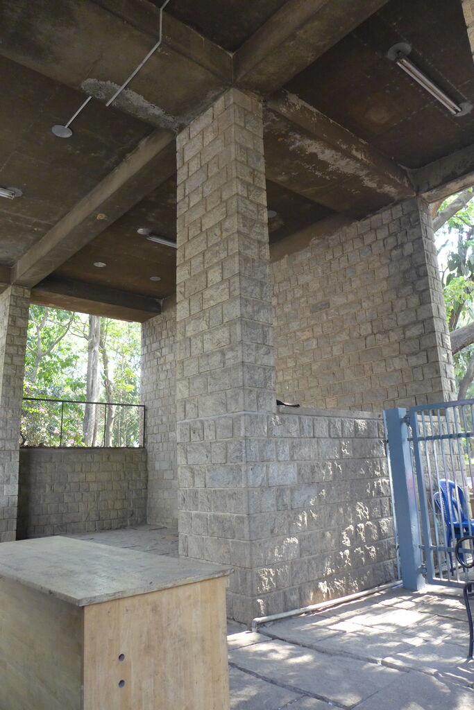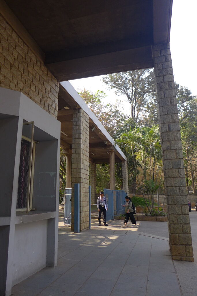 この正門も、フランス政府からチェンディガール計画へ派遣されたスイス人巨匠建築家ル・コルビュジェのスタッフとして活躍したインド人建築家の一人で後のアーメダバード建築大学教授Doshi設計。