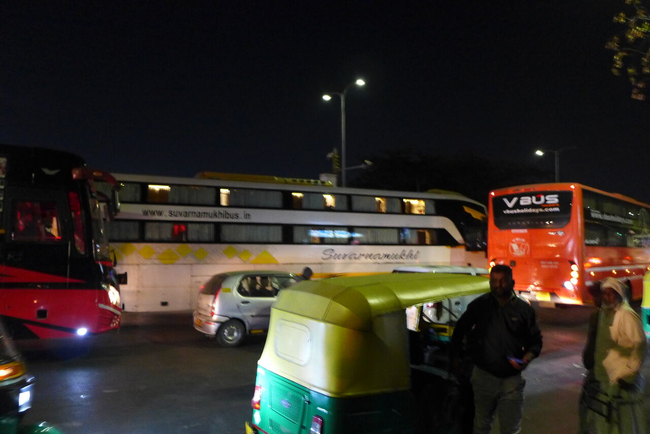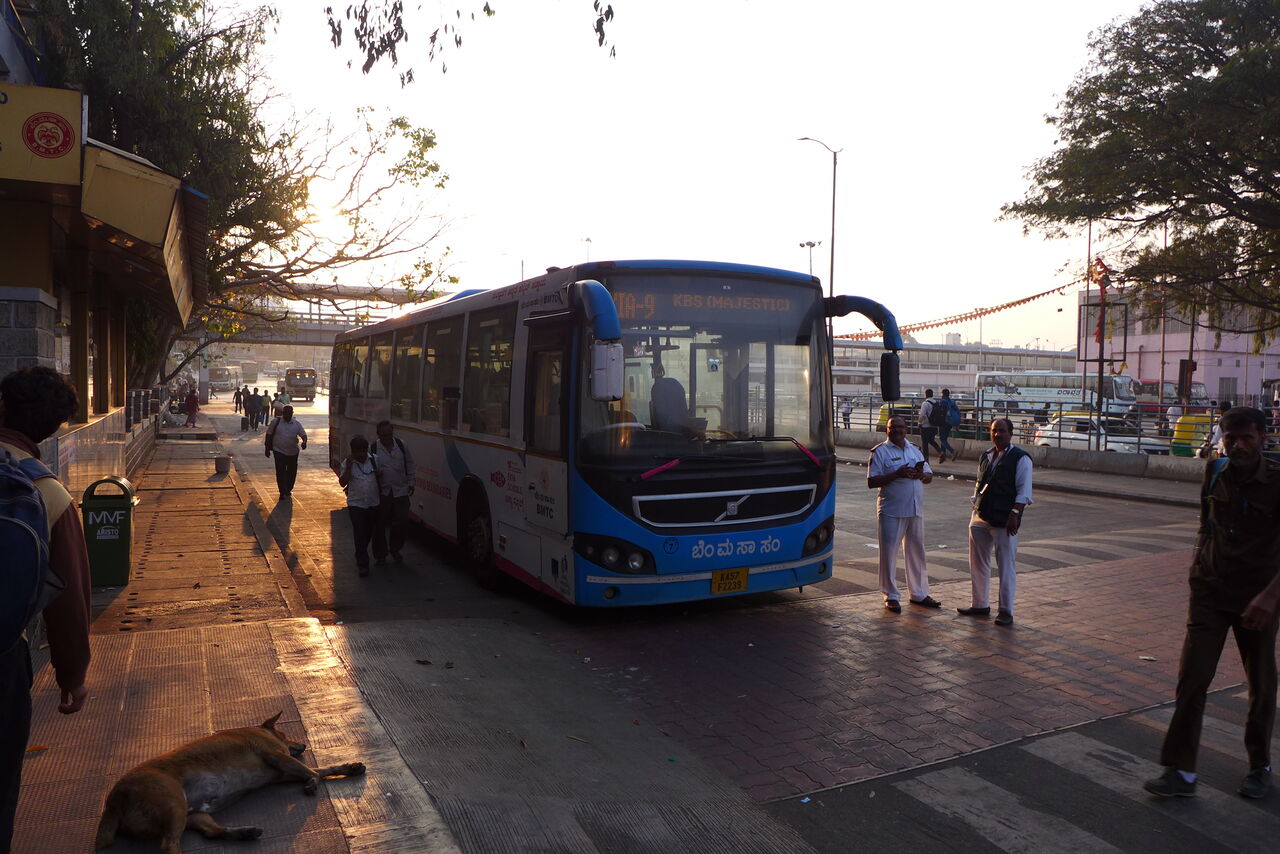 バンガロール中心部マジェステックのバンガロールジャンクション駅・バスセンターに到着。まだ明け方で眠い。