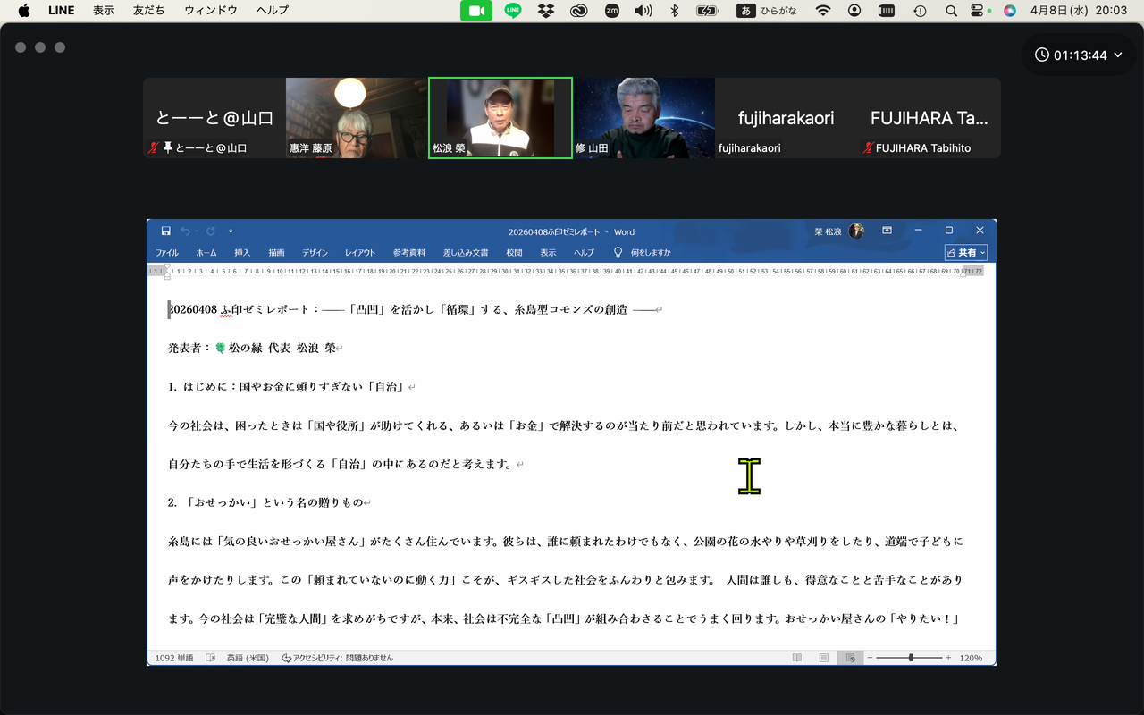 2026年4月8日(水)19:00〜21:30ふ印ラボ第64回定例ゼミを9名メンバーにて開催!